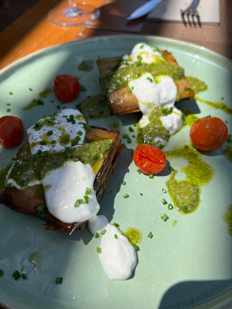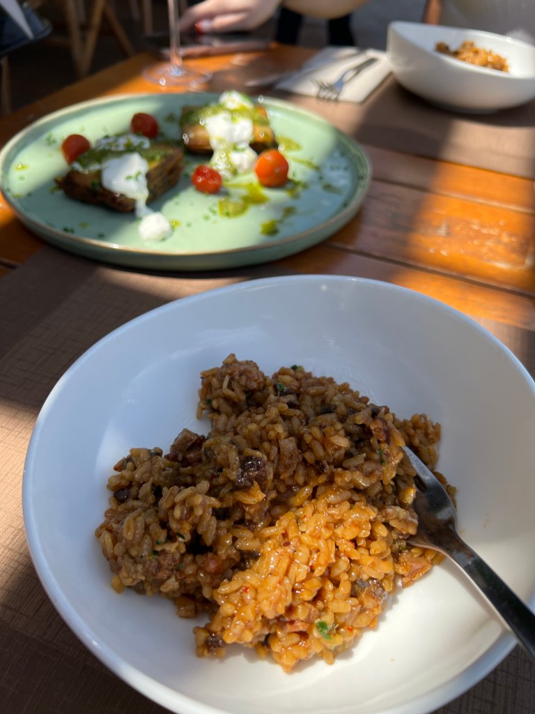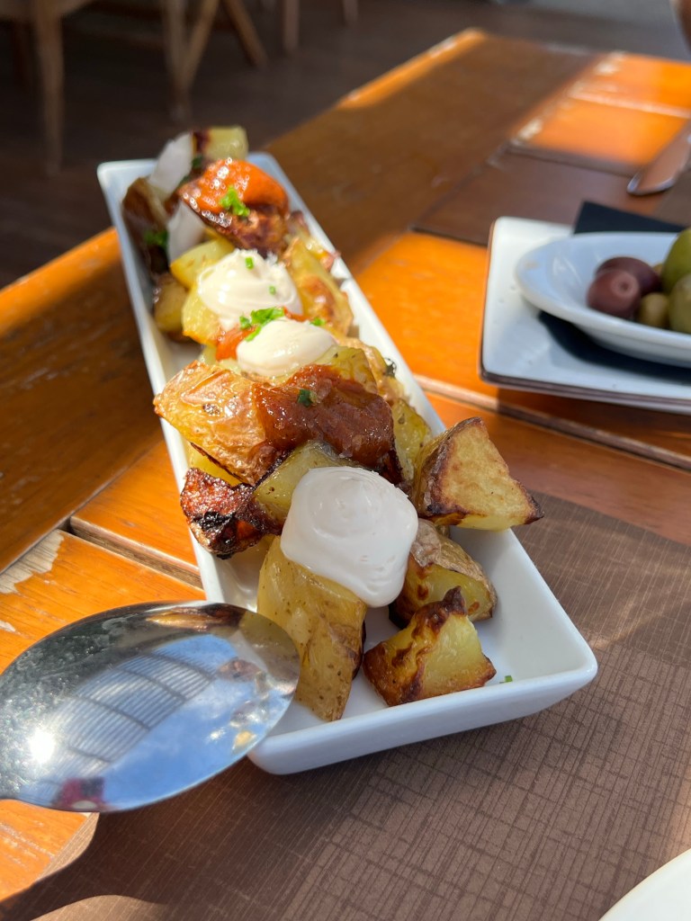 Our guide was able to get us an outdoor table at El Celleret for lunch, so we thought we may as well enjoy lunch since Macy was sleeping. Holy wow. I really do hope I get to come back here again some day. We ordered a bottle of the Waltraud Riesling, it is such a good wine paired with any food really. And we may have gone a bit over board with our food order. Our server actually came back to confirm that the order was correct and that we did indeed want all the food we had ordered lol. We ordered: the Patatas Bravas (these ones were by far the best patatas bravas we had ever tasted. They win first prize), a plate of mixed olives, roasted beetroot hummus, a vegetable pesto lasagna (my mouth is watering just thinking about it) and a Catalan rice and sausage with aioli sauce. The food was amazing, the setting was absolutely beautiful, we couldn’t eat even half of the food so we messaged Stephen to come join us. Which he did, and we still packed up plenty to go for Macy to try later when she was feeling better.