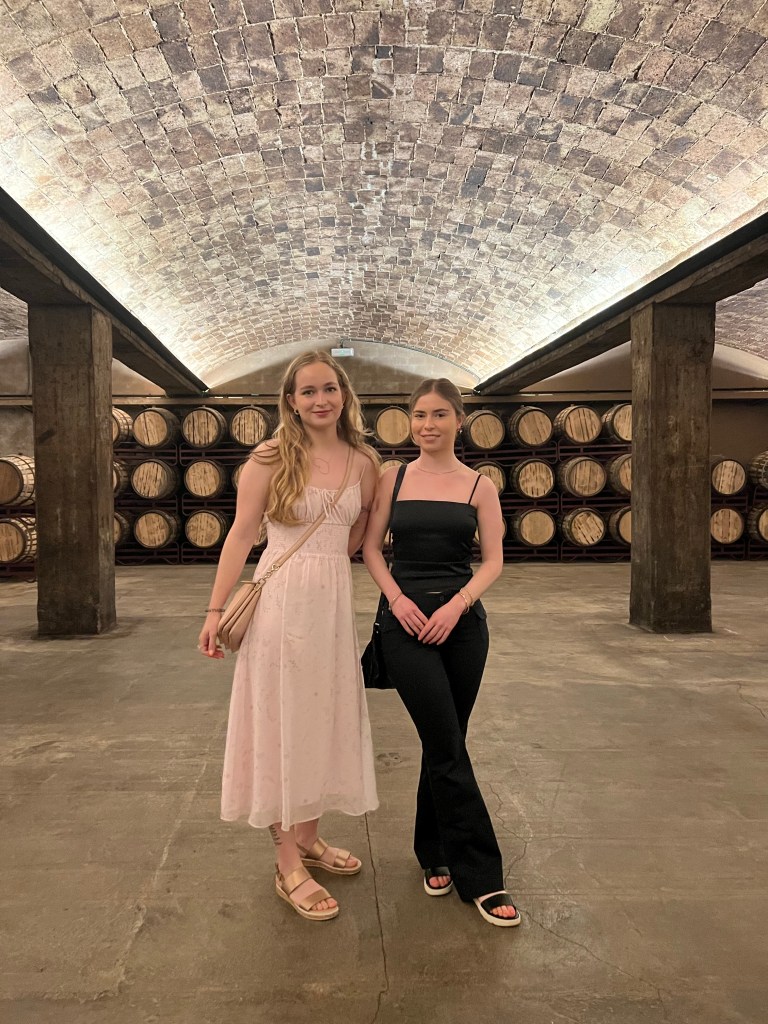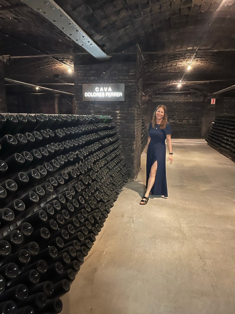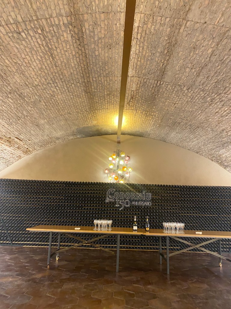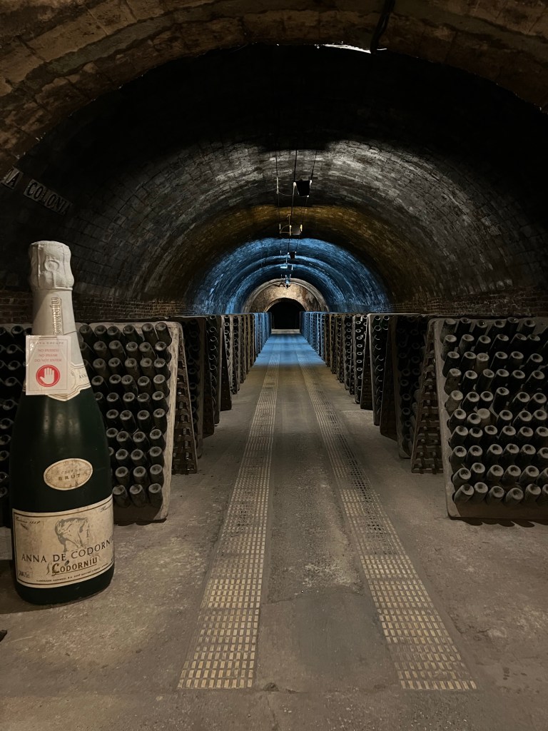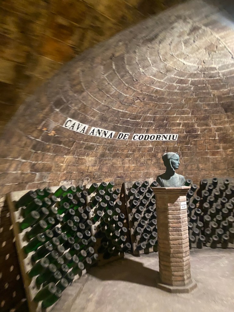 This morning we have a cava tastings and tour at Codorniu. Macy woke up and felt like herself again, so all plans were back on schedule! Codorniu is on a beautiful estate. This was the largest group of all the tours we’d been on in Penedes. We headed straight to the cellars and on to a train system that took us quickly around part of the cellars. Then back up to the main area and down into their “tasting area” which kind of felt like an old gymnasium. Everyone just stood around as our guide quickly poured 2 types of cava for everyone to taste and then off everyone went. This was definitely not my favourite tour experience, actually probably one of my least favourite. It felt like, how can we quickly get as many people in and out as possible. Oh well. On with the day!