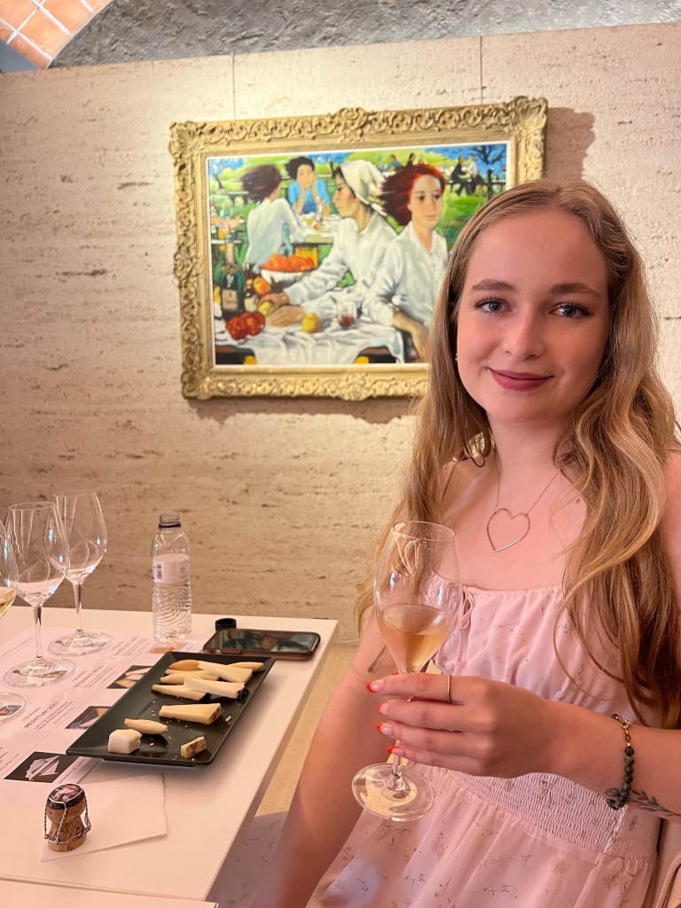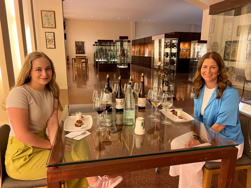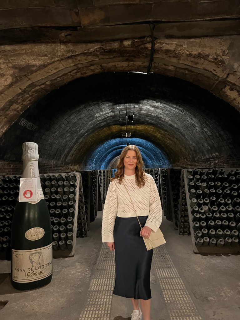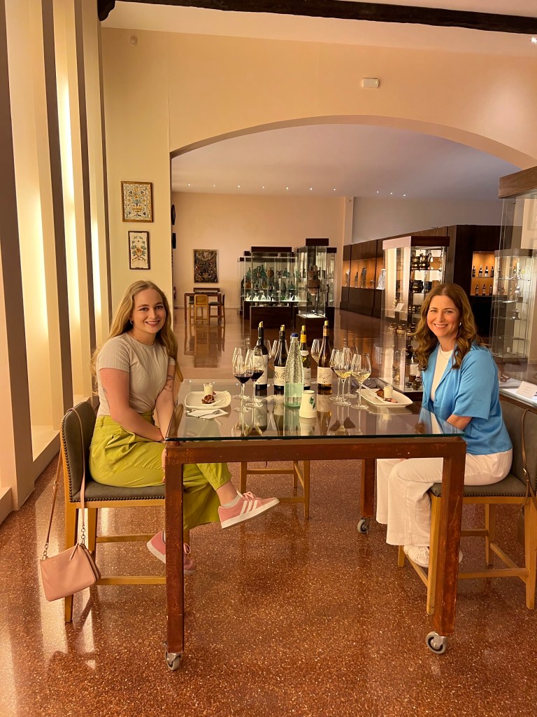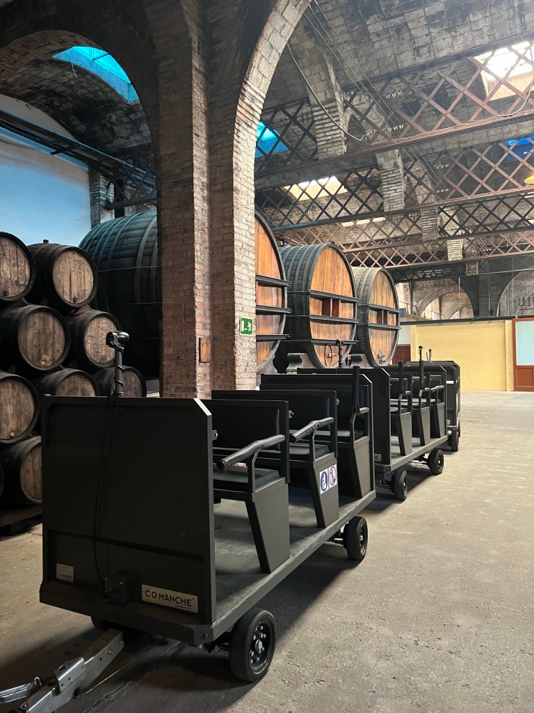 This morning we have a cava tastings and tour at Codorniu. Macy woke up and felt like herself again, so all plans were back on schedule! Codorniu is on a beautiful estate. This was the largest group of all the tours we’d been on in Penedes. We headed straight to the cellars and on to a train system that took us quickly around part of the cellars. Then back up to the main area and down into their “tasting area” which kind of felt like an old gymnasium. Everyone just stood around as our guide quickly poured 2 types of cava for everyone to taste and then off everyone went. This was definitely not my favourite tour experience, actually probably one of my least favourite. It felt like, how can we quickly get as many people in and out as possible. Oh well. On with the day!