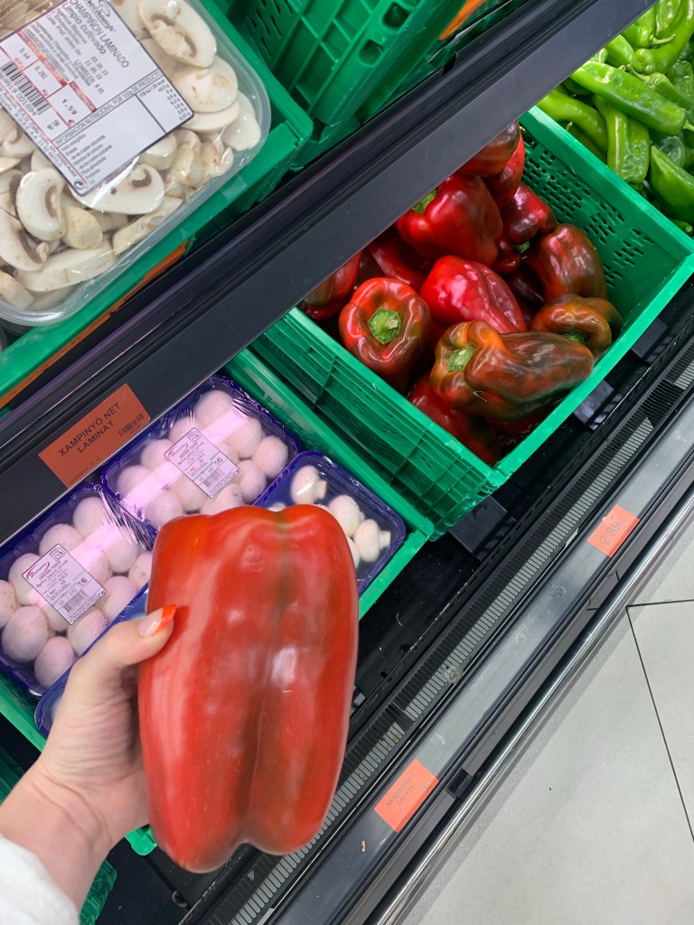After lunch we were disappointed that the market had already packed up, so we decided to head to Vilafranca del Penedes to pick up some groceries. Can I tell you a little secret about myself when I travel? I frigging LOVE grocery shopping in different countries! Like it’s a highlight of my trip to wander up and down the aisles and marvel at the produce, checking out the local cheeses, and the fresh baked bread. You guys the red peppers in Spain are massive!!!! Like I’m not joking! They are so big! Things that were awesome at Spanish grocery stores: You could juice your own fresh orange juice in store. The oranges were the BEST oranges I’ve ever tasted! Spanish onions are even better/sweeter in Spain, so sweet in fact you can eat them raw no problem. Local saffron, enough said about that one! They had an Iberian Ham station with legs of ham and someone there just carving off slices for you. Amazing! The wine selection! You could get one of the best local wines for as little as 2 euros a bottle. Seriously I had the best Rose of my life and it was 2 euros! Hahaha we are the weirdo tourists running around grocery stores taking pictures and videos like we’ve never been in a grocery store before.