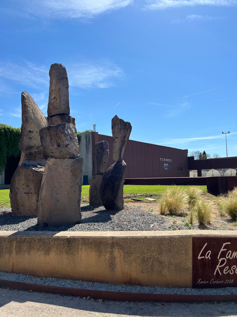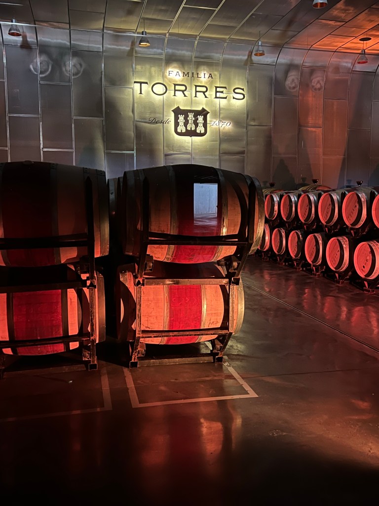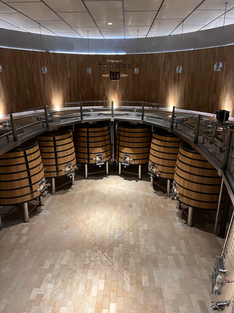 After we got back from our walk we started to get ready for our wine tour at Torres, but Macy had an unfortunate accident and struck her head really hard on a beam in their loft bedroom. I was scared she might have a concussion, so we decided the best thing for her would be to rest in bed and Stephen would stay back with her. So Makena and I had a private tour at Torres. Not to rub it in Macy, BUT It was one of the most beautiful vineyards I’ve ever seen and the tour was one of the most in depth, informative tours I’ve ever been on. And the wine tasting and tapas were out of this world good! Sorry Macy, we’ll have to go back someday 😦 Again the tour started with a video in their theatre and then we went for a walk through the beautiful Mas La Plana vineyards. We were even able to see the house that Miguel Torres and his wife still live in to this day. Then we boarded a 100% solar powered vehicle to take us through some of their old growth vineyards and over to the processing area and then to the Waltraud Cellars.