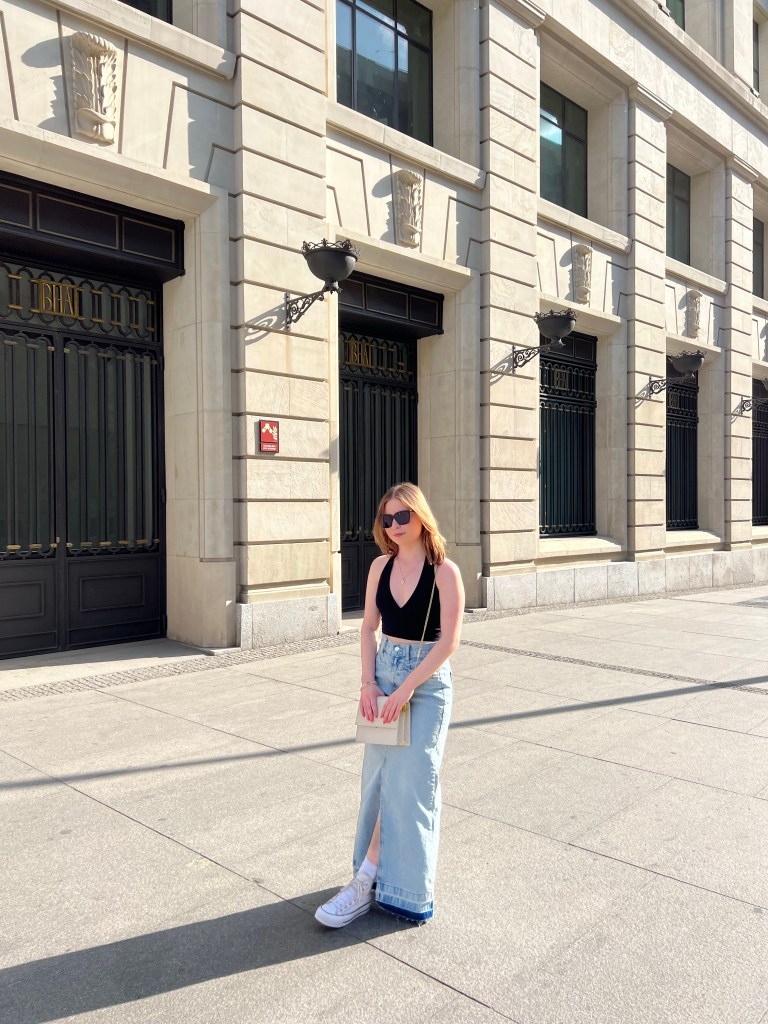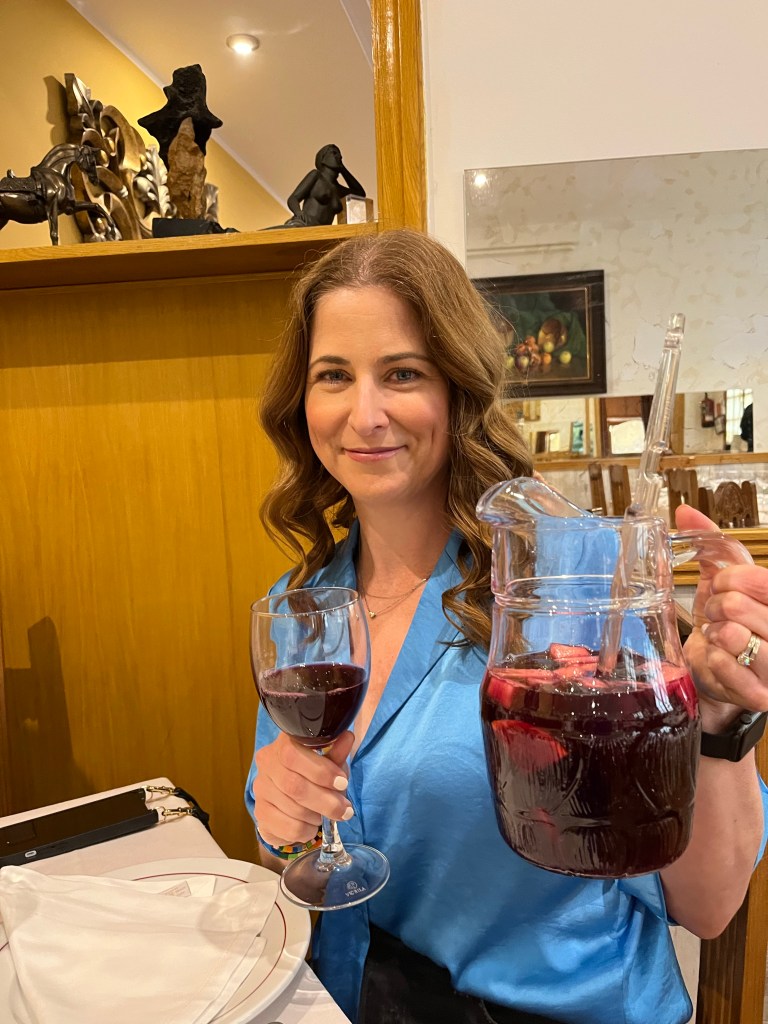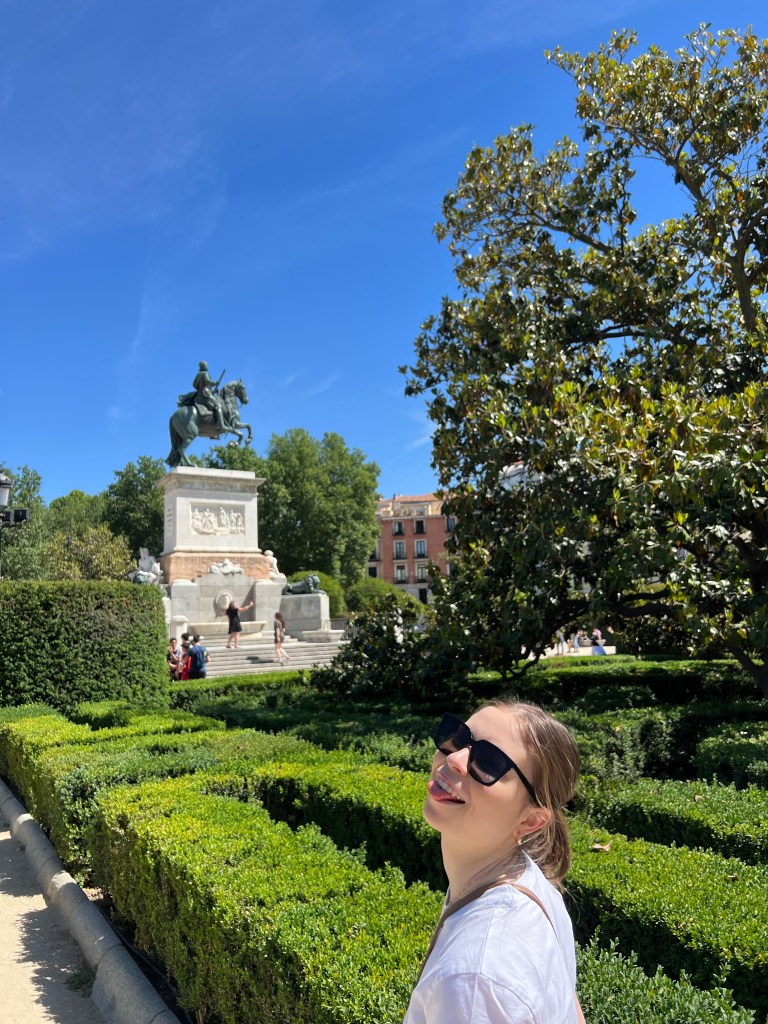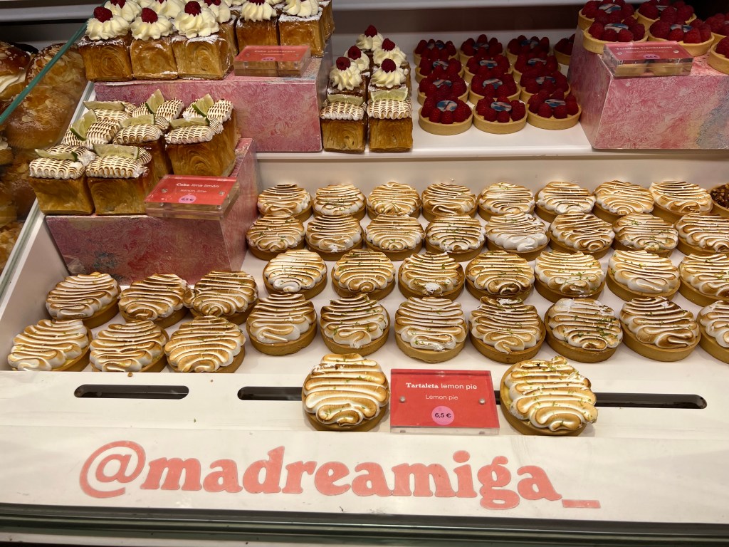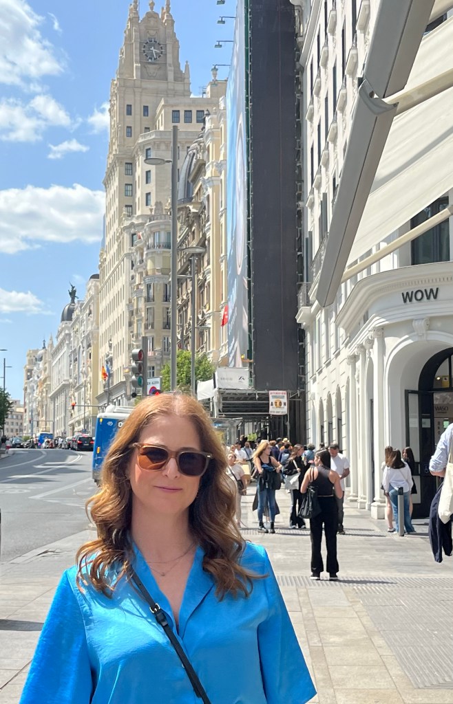 Today is our wander around the city day. Nothing was booked so we were totally on our own time line. For breakfast Macy and I grabbed the famous pastries from La Mallorquina. So buttery and flakey and delicious! And then stopped in at the Mercado de San Miguel for a coffee and a sausage roll for Makena. And I’m Pleased to report that the market was not insane at this early hour and I did not have a melt down lol. I even have a picture to prove it! Ha! Look at me all cool as a cucumber!