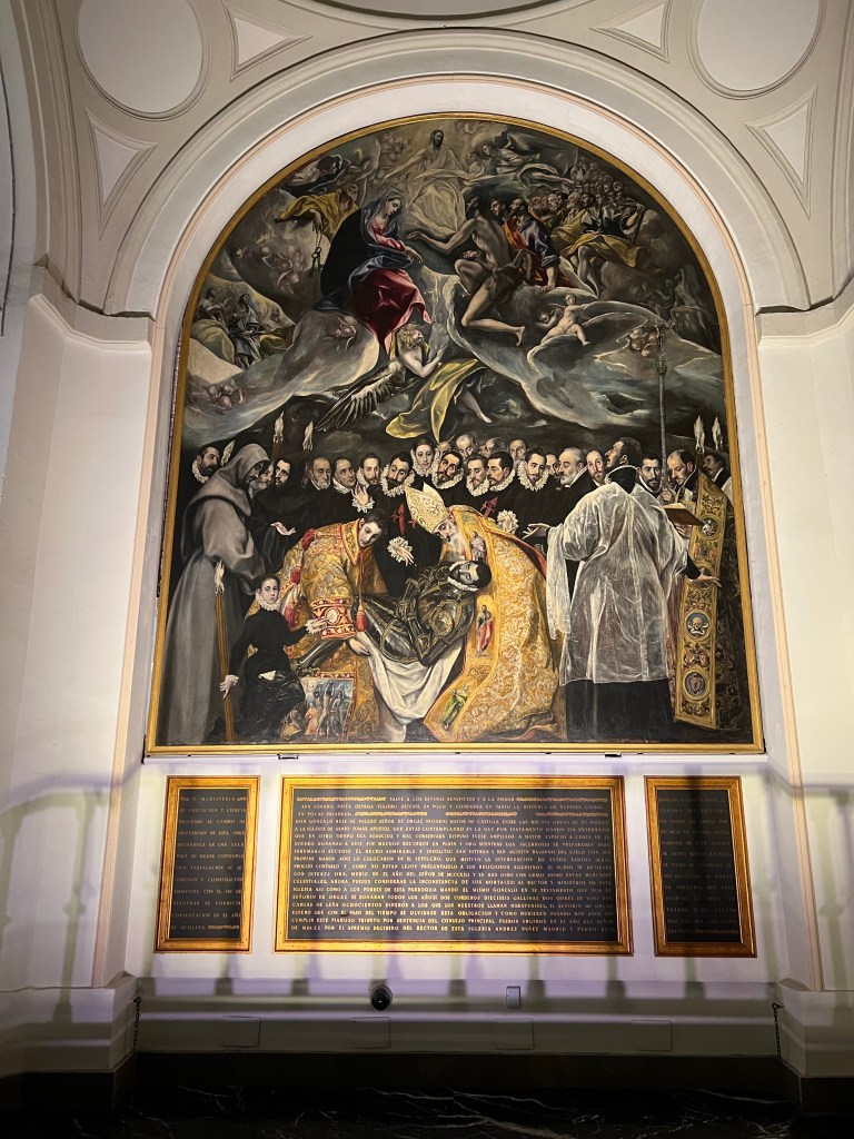 Next we visited Santo Tome church which is the home of El Greco’s most famous masterpiece The Burial of the Count of Orgaz. The artwork depicts a local legend in which Saints Augustine and Stephen descend from heaven to assist in the burial of Don Gonzalo Ruiz (Count of Organ), who was a native of Toledo and a beloved philantropist.
