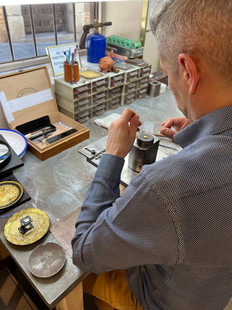 We also stopped in to see a local jewelry shop that is renowned for its damasquinados jewelry. Damascening is the Moorish art of inlaying gold and silver threads into black steel in a decorative pattern. The girls and I each picked out a beautiful pair of earrings.