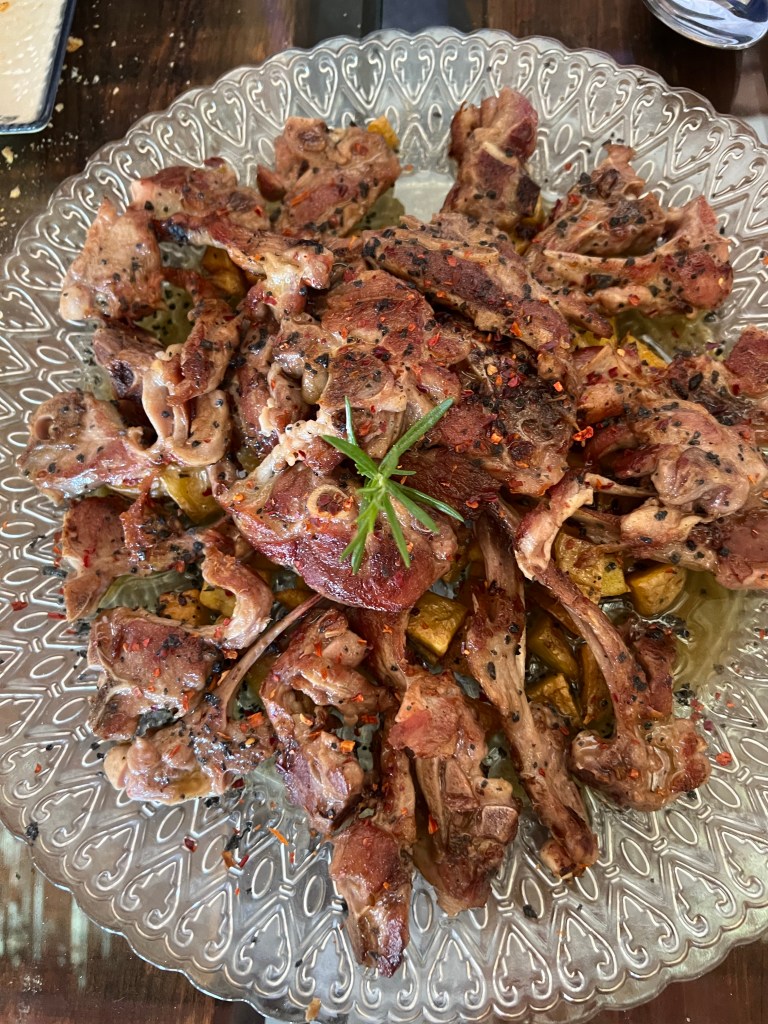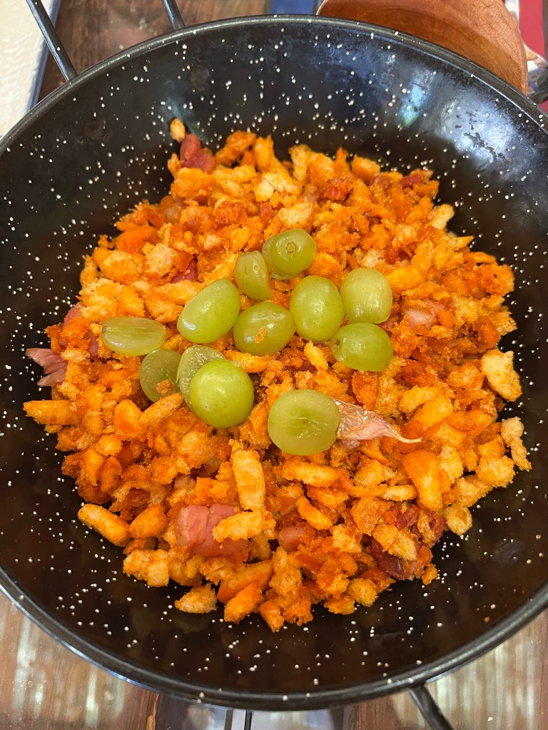 For lunch we stopped at a little hole in the wall. And I mean this almost literally! There is no way we would have ever found this spot on our own. We had some delicious, homey dishes including a bread and chorizo salad topped with grapes, a chilled eggplant and tomato stew, a lamb dish, and a very unique to us dessert. They called it fried milk (leche frita), and it was served on top of a saffron spiced custard dotted with pomegranate seeds. If you are ever in Spain and have an opportunity to try Leche frita.