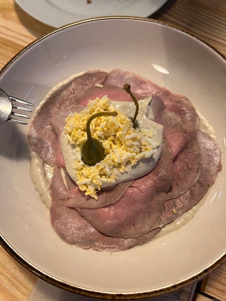 For dinner we went Cedron Wine Bar. A really cute, small Argentinian style restaurant that focuses on local, organic and biodynamic wines. For our starters we had….drumroll….Iberian ham croquettes (it never got old I swear!) and viteloo tomato, which isa cold sliced veal covered in a creamy, mayonnaise like sauce. Never had anything like that before…and probably give it a pass if I ever see it on a menu again lol