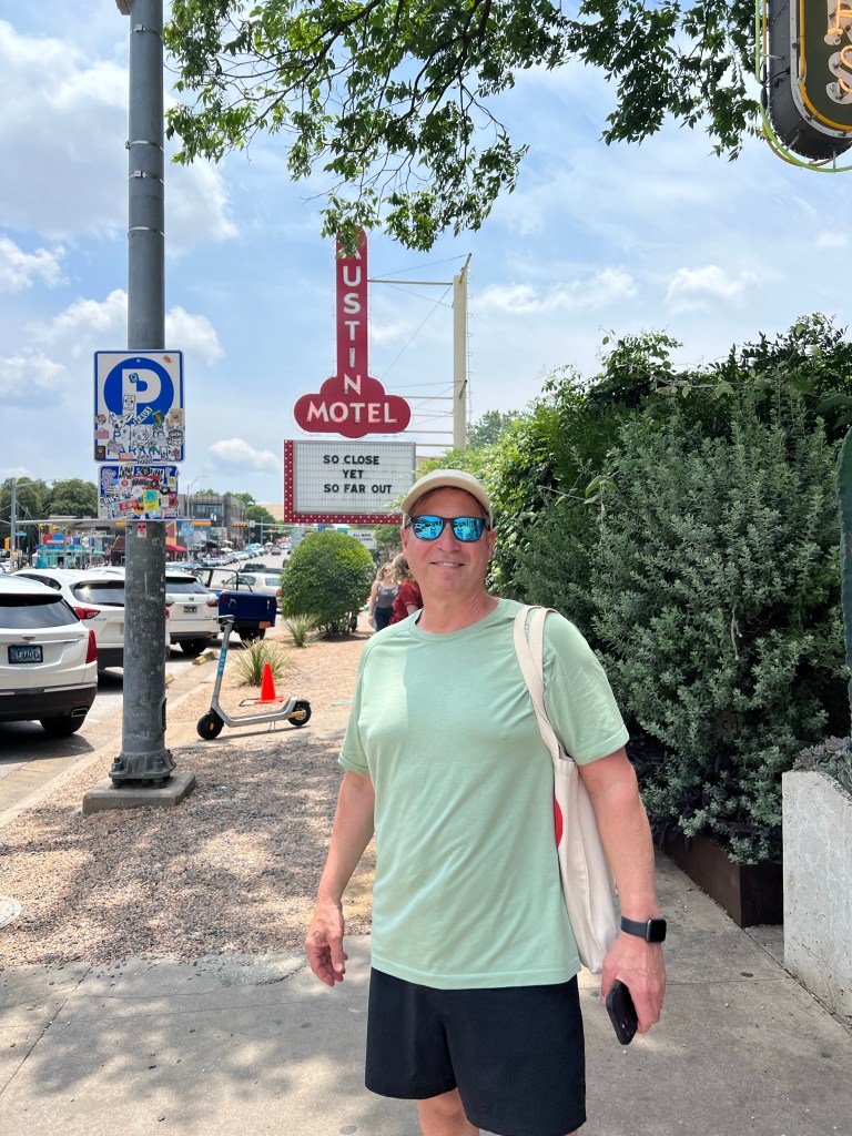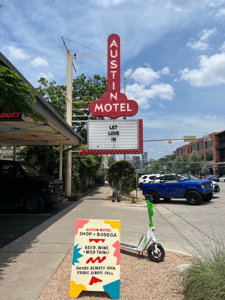We started our day by hitting the gym. The W Hotel Austin has an incredible fitness facility. They had 3 Peloton bikes, so I finally got to try one and instantly fell in love with it! (But sad face because they don’t ship to Canada). After our work out we went directly to the outdoor pool, which was lovely because we were the only people there, so Stephen ran down to Starbucks side the hotel to get us a coffee and egg bites while we enjoyed the peace and quiet (and heat!!!) of the morning. But by 11 am they pool was ramping up the party vibes, blasting music so loud we could no longer even talk to each other (hahaha yes we’re old!) so we went up to shower and then out to explore South Congress