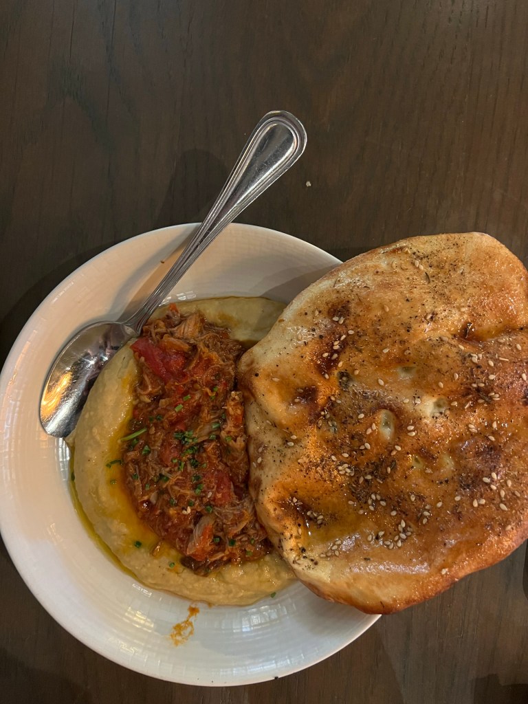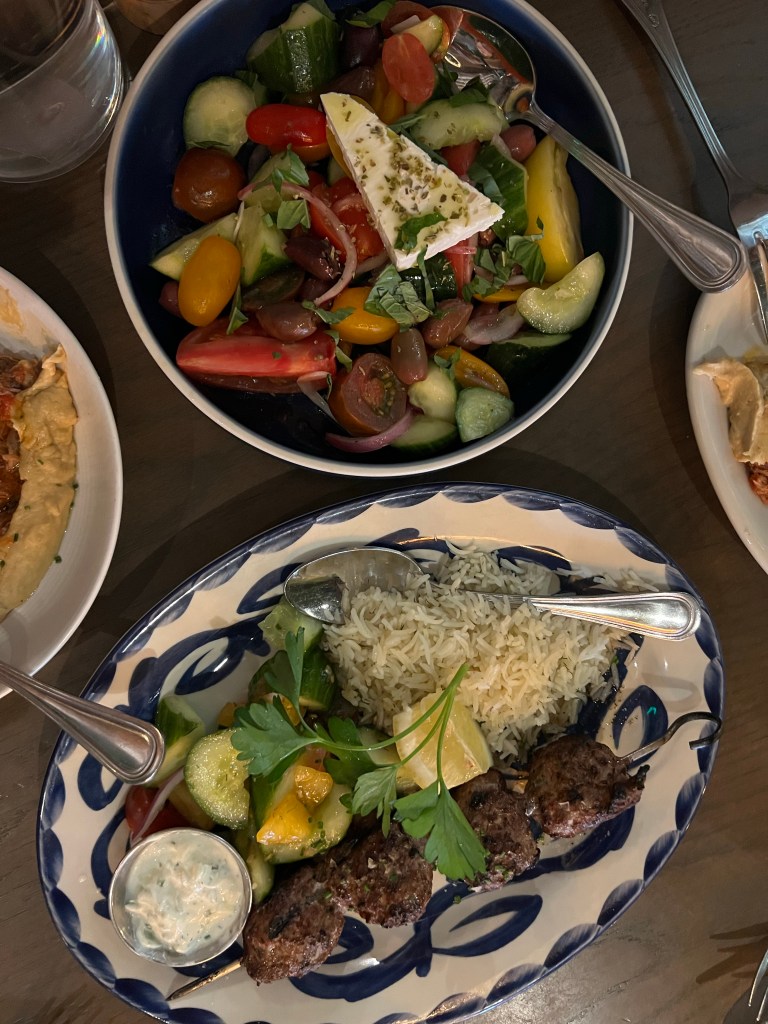 We ordered to share: the hummus with spicy lamb ragu (so unbelievably delicious!), Greek salad, and lamb and beef kofta kebabs. The hummus won the show, but everything was really good. We left feeling very happy and with full bellies.
