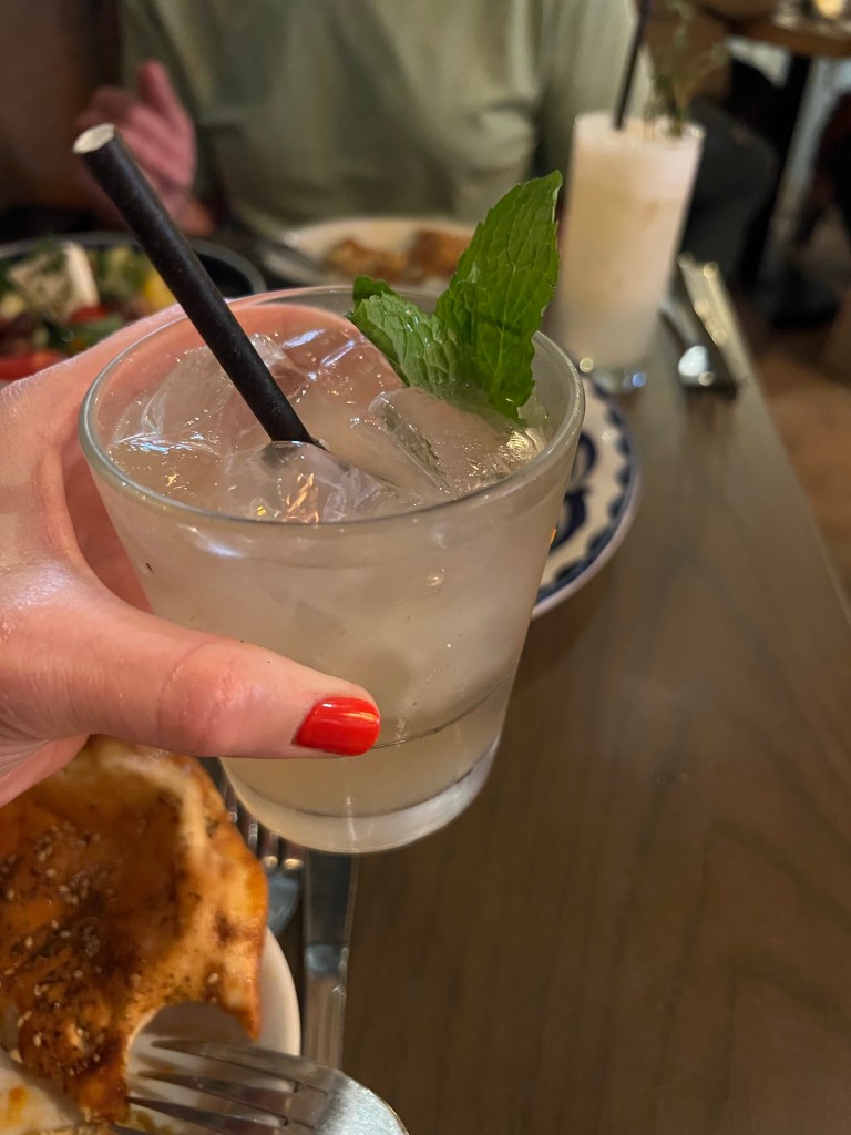 For lunch we got a local recomendation to try Aba Restaurant, which ended up being one of my favourite places in the city. It’s a beautiful, Mediterranean style restaurant and the food was really delicious. It’s a must visit if you are in Austin. We started with cocktails (it was for medicinal purposes! We had to cool down!) Stephen ordered the Mediterranean Mule which had a herb infused vodka, almond, Galliano, ginger and lime. My cocktail was Rhubarb Rose G&T, which had Hendrick’s flora adore gin, rhubarb, honey lime and tonic. Both were yummy!