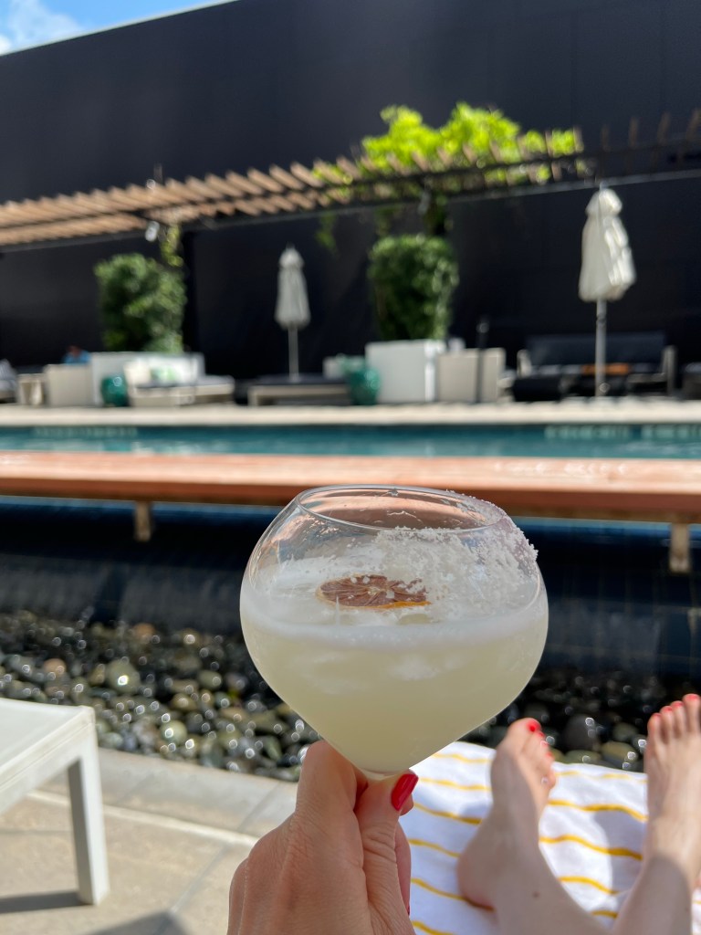 Kelly and I did some more shopping this morning. We decided we both wanted to get a pair of cowboy boots so we went directly to Tecovas. It’s a really cute boot shop. I must have tried at least a dozen different pairs. I went in thinking I wanted a mid high black pair but ended up purchasing high cream coloured boots. It was a fun shopping experience. The heat was unreal and it was still mid morning so we decided to take our boots and head back to the hotel and relax by the pool. The pool was quiet, all the party goers from Memorial Day weekend had all checked out so it was very chill. However the pool looked like swamp water and was badly needing a good dose of chemicals so we opted not to go in the water but had our lunch and a refreshing margarita pool side.