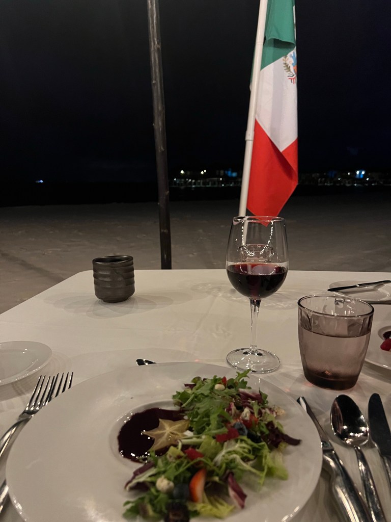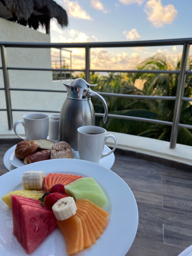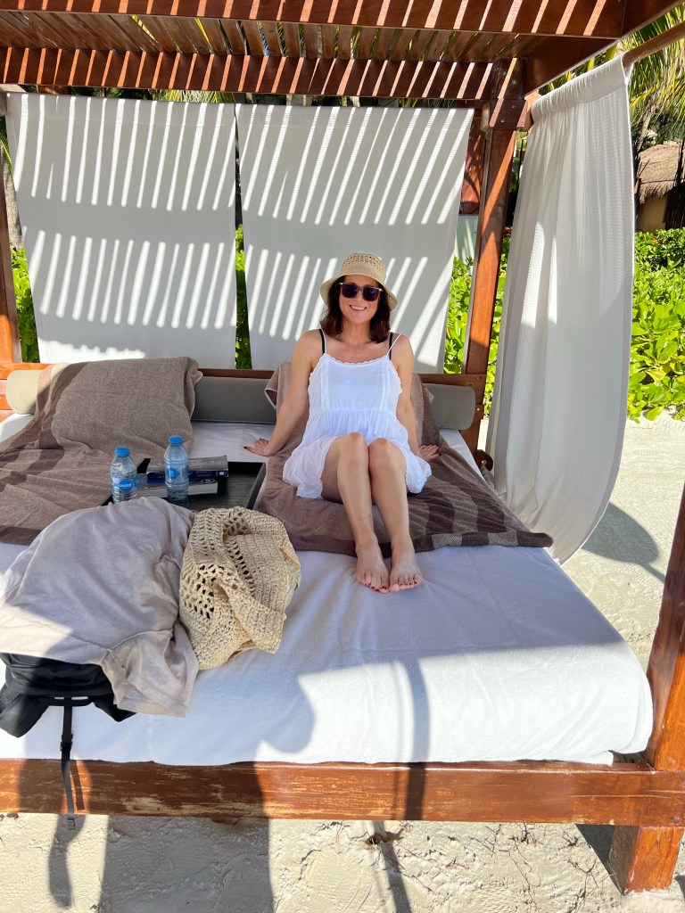 We arrived on our actual wedding anniversary. It was kind of funny because the staff seemed to think 23 years of marriage was a really impressive. We arrived to our room, dropped off our luggage and went directly to the restaurant for a late lunch. We hadn’t eaten since breakfast and it was now 2:30 pm Mexico time. For lunch we had margaritas (of course!) and I had beef tacos and Stephen had the Maroma chicken. And then we spent the rest of the afternoon on the beach!