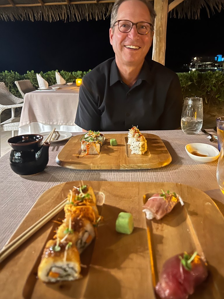 Wakeup at 6:30 and go to the gym for an hour. Shower and go to breakfast. Find our beach Bali bed and drop off our stuff and go for a walk. Come back to the Bali bed and read until lunch. Go for lunch and then have a nap. By 3pm or so, we’d have a cocktail. Read some more. Go back to room and clean up for dinner. Go to dinner. Walk around resort post dinner. Then be in bed by 9m. It was relaxing. Quiet. Peaceful.
