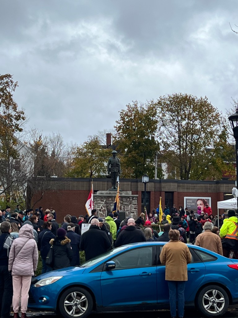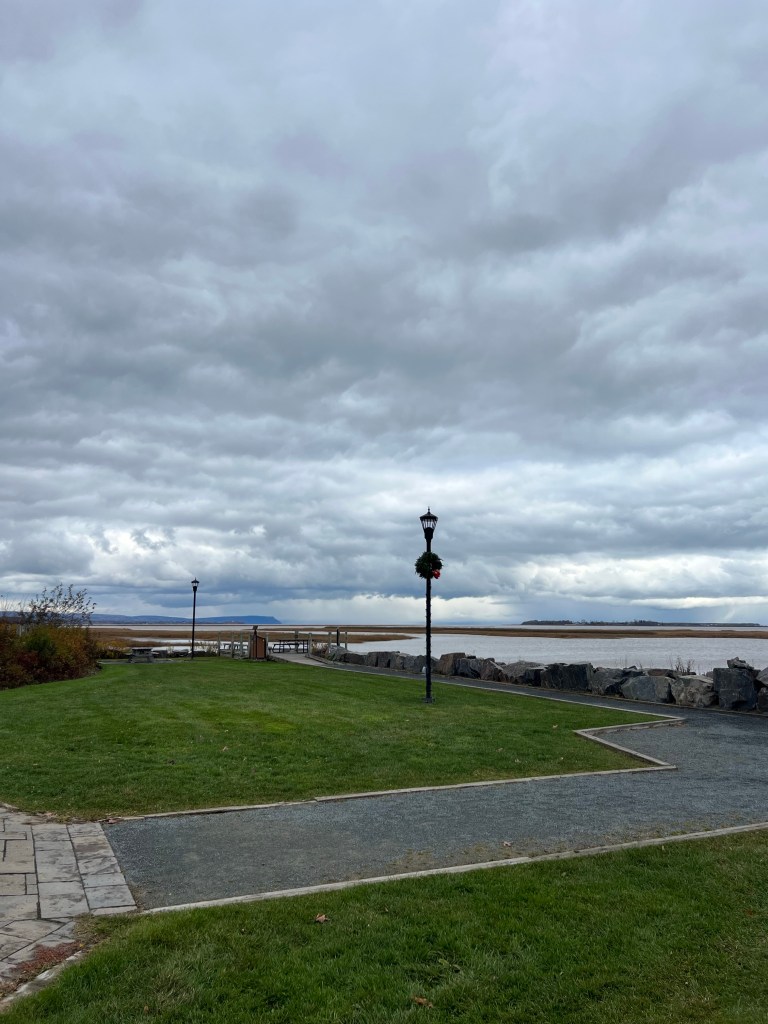 We drove in to Wolfville and explored the farmers market. I bought us matching sterling silver stud earrings from Sterling Coast Designs as a memento of our trip. After the market we walked up to the cenotaph for the Remembrance Day memorial ceremony. And then we had brunch at Naked Crepe Bistro. Macy and I had the Parisian Crepe which was delicious! And Makena ordered the hangover sure which she really enjoyed too. After brunch we strolled the shops. We really like the Valley Girl shop, I got a candle Macy got a mug and Makena got some nail polish. We also stopped into the Harvest Gallery and I fell in love with local artist Arnaud Beghin’s paintings.