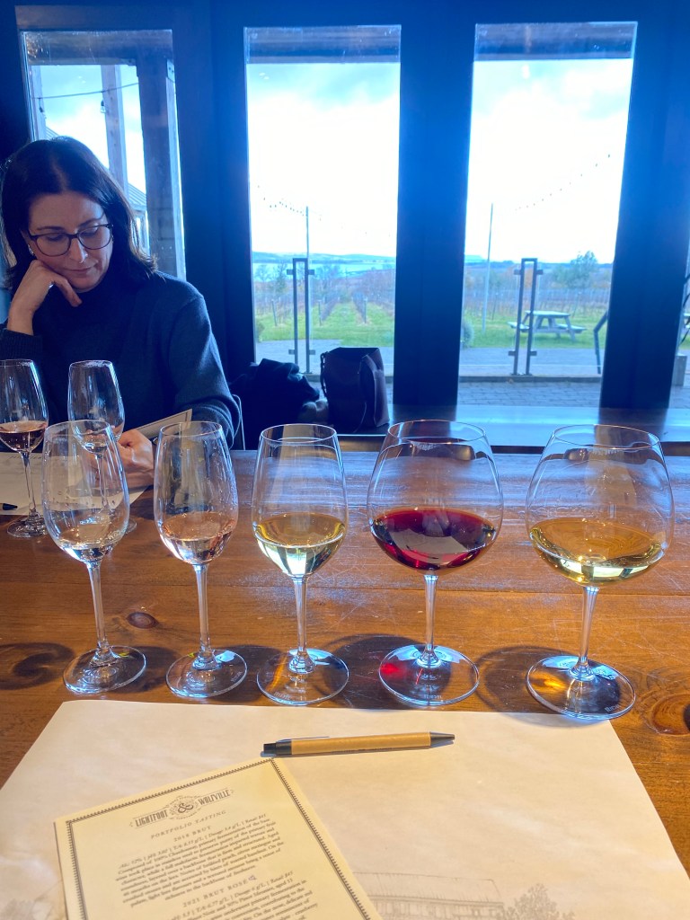 After lunch we took some photos and then headed to Lightfoot & Wolfville for a private tasting. It was our first time there, we were very impressed with the winery and looked like a nice spot to have lunch too . We started with a lovely tour of the vineyard grounds and then a tasting in their private tasting room. I purchased some of their sparkling wines, a Chardonnay and a Riesling.