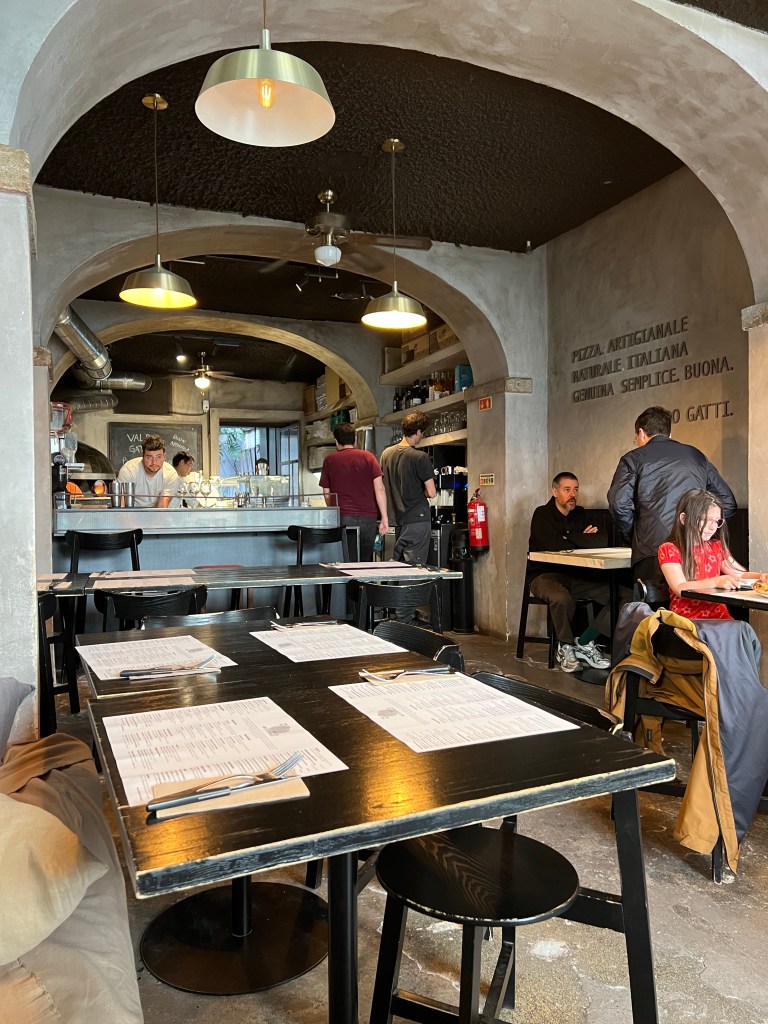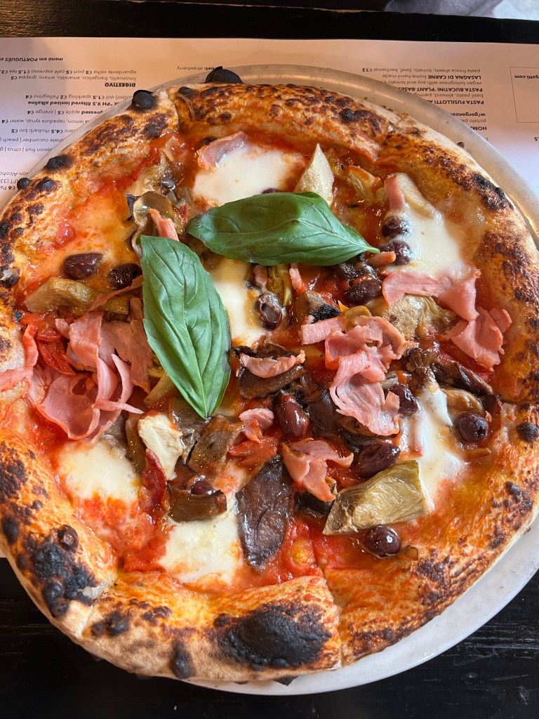 After we got settled in our room, we quickly realized that we were starving, so headed out to grab some lunch. Of course I had researched the area around our hotel, so I knew exactly where I wanted to go for a quick lunch. We went to Valdo Gatti for some delicious sourdough wood fired Italian pizzas. It’s a small little spot, easy to miss, but nice inside, and the staff were great! We got some house red wine (cheaper then bottled water!!!) For a starter we shared an order of Ravioli Di Baccala. A handmade ravioli stuffed with smoked cod and chickpeas with a lemon coriander sauce. It was delicious and definitely unlike any other ravioli we’ve ever had. And for our main we shared an order of the Capricciosa pizza, which had tomato sauce, mozzarella, artichoke, olives, mushrooms, prosciutto and spicy salami. Yum!