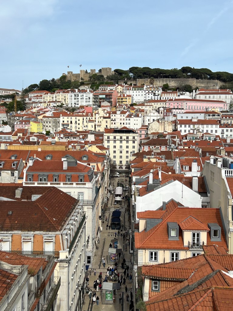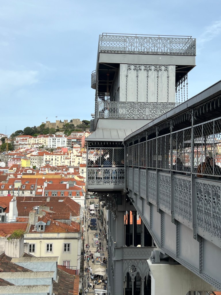 Eventually we made it up to the Santa Justa Lift. This is a century old iron Neo gothic elevator which is similar in appearance to the Eiffel Tower as it was built by a student of Gustave Eiffel. However the lineups to go up the elevator are crazy long, especially since it can only take 15 people up at a time. Luckily in my research I found a way to skip the line (and the cost) but still gets you to the top of the tower so you can get the same views, just not the ride up in the lift. (Google Travelling With Nikki for the shortcut).