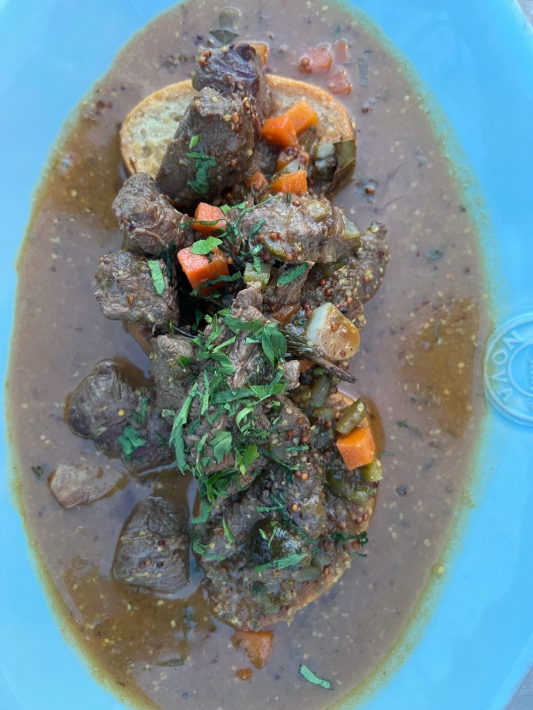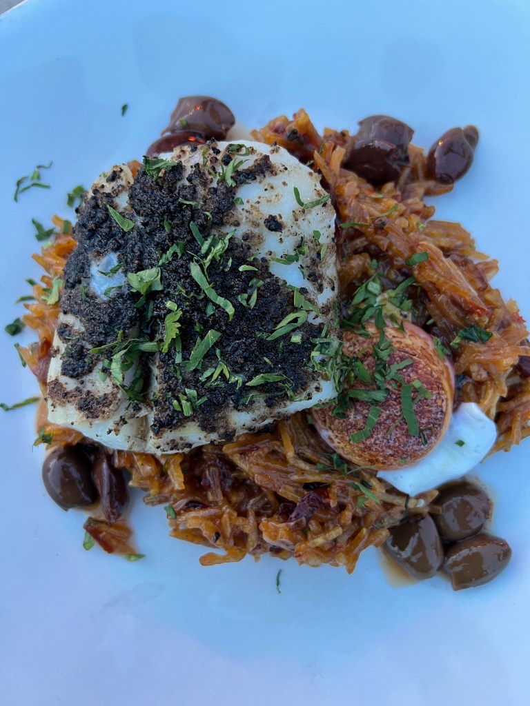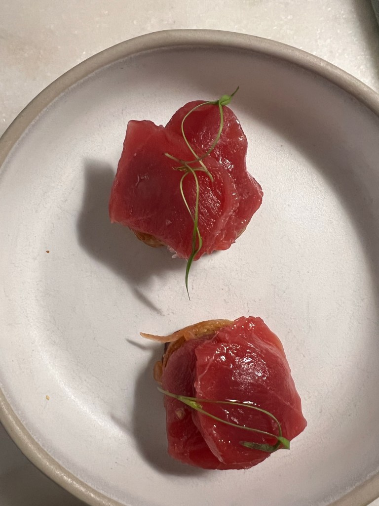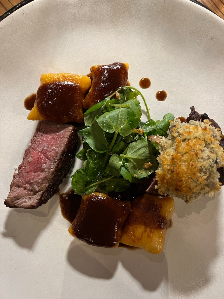 For dinner tonight we went to Bono Lisboa, which is now tied for my top 2 Lisbon restaurants (the other is the Lumi Rooftop Bar on our first night). And you know how some times you order and you just don’t make the mark, and other times you order and it’s like you won the lottery. I won the order lottery tonight! So this restaurant is owned by Brazilian immigrants. So it has more of a Brazilian flare to it I guess you could say. So first of all the restaurant, is on the smaller side, with an open kitchen that also blends into the bar. Not a ton of tables but the place feels intimate and chill. Again we had great service. For a starter I had the Grilled Brazilian Shrimp. Stephen had the Pork Croquette. We both loved our starters. For mains, I had beef and for dessert I had the chocolate cube. OMG! It was all delicious. And we had a bottle of local red wine for the table that was perfect and not expensive.