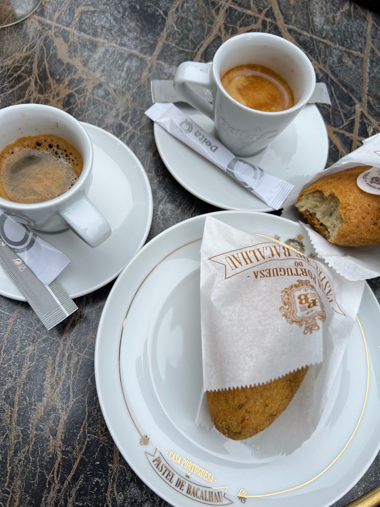 We grabbed a salt cod fish cake for lunch and then headed back to the city centre to A Brasileira, a beautiful cafe for a pastel de nada and some coffee.