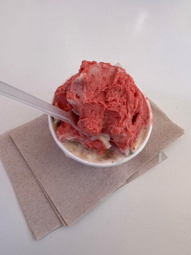 We popped into this ice cream shop that our driver told us about for a little mid morning ice cream treat! Hey why not?! We’re on vacation! One scoop of strawberry and one scoop of almond