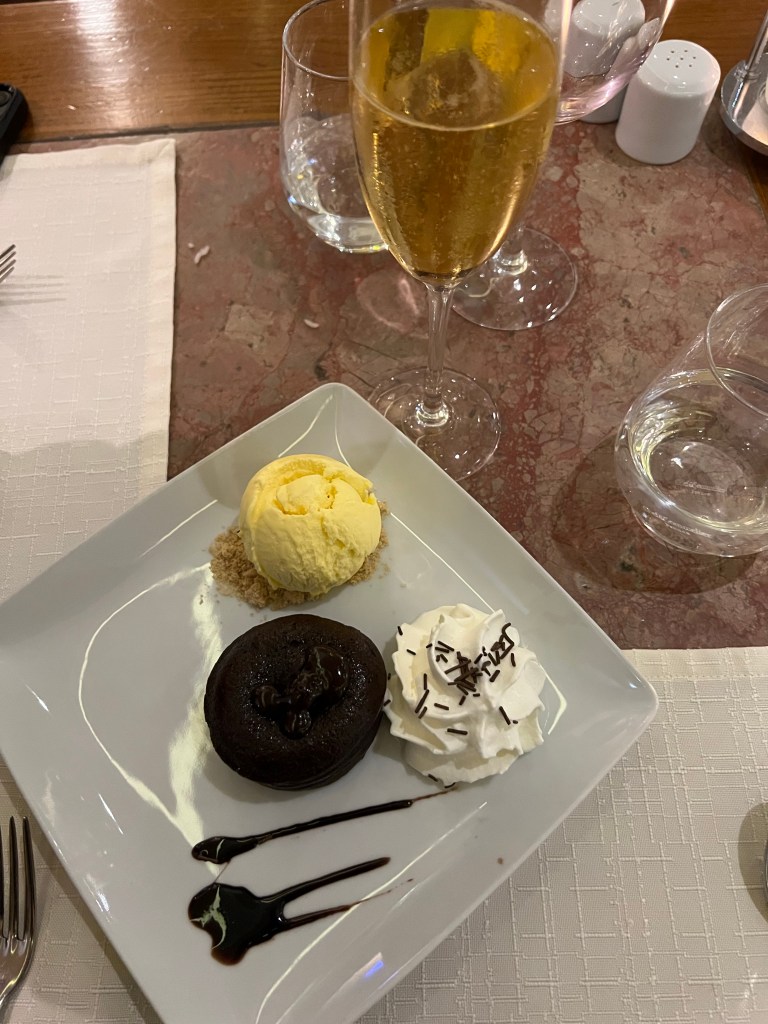 After getting settled we took a quick stroll around the centre of the old town and then headed to our dinner reservations at Don Henrique which was a recommendation from our Airbnb host. I’m going to come right out and say that this place was not the vibe for us. At all. We were the youngest there by far…and that’s saying something! Lol. And the food…I suppose it suited the clientele, but it reminded me of food from a nursing home. We both ordered the salmon, which came with overly boiled vegetables and a chocolate lava cake for dessert. Enough said.