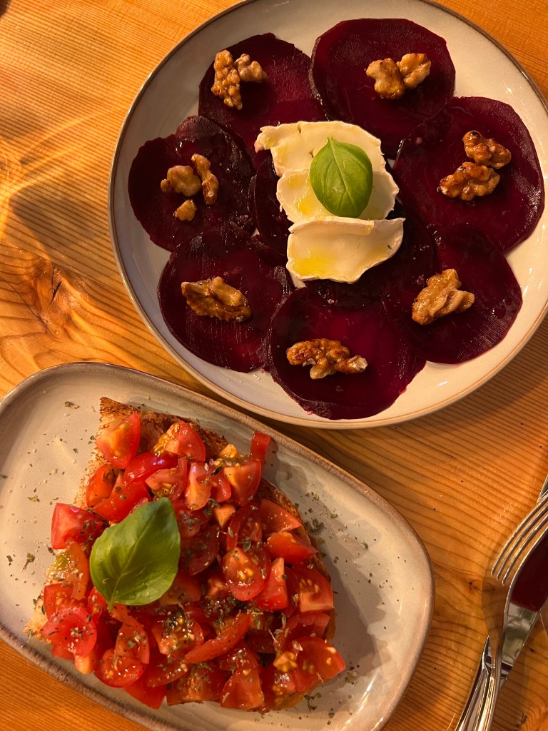 We ordered bruschetta and a beet carpaccio for our starters. And I ordered the pasta alla norma and Stephen had the daily special which was a ragu di salsiccia. Both pastas were delicious.