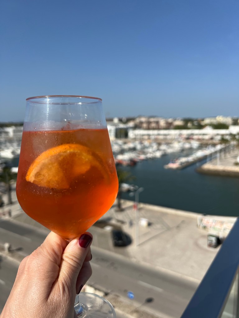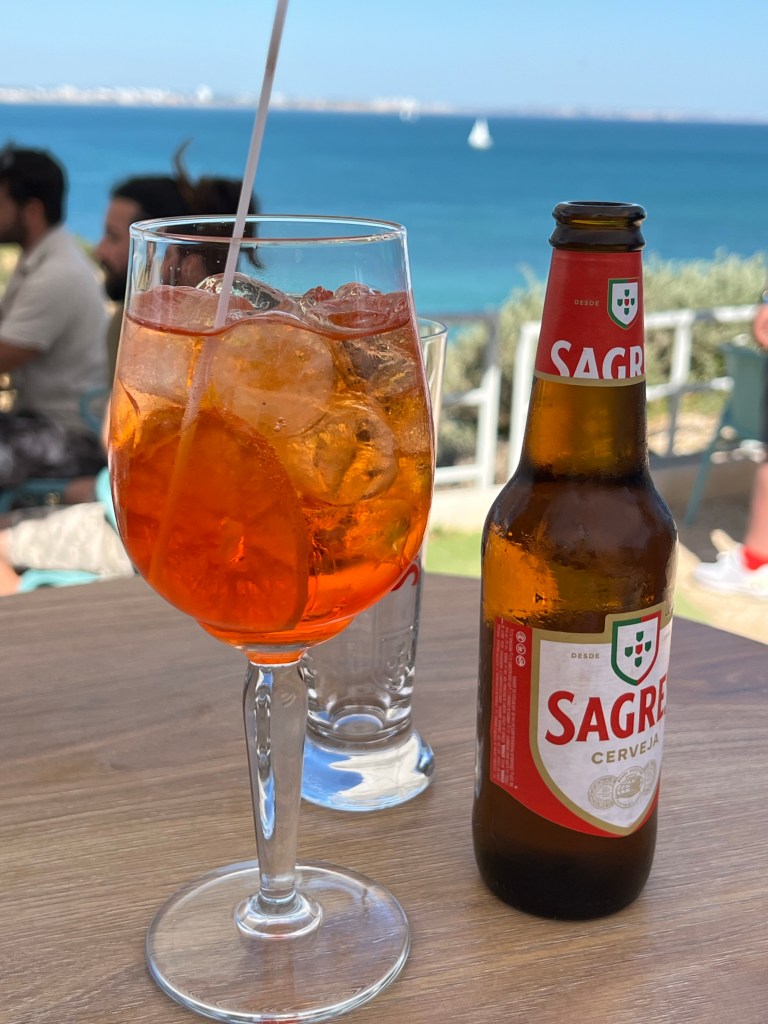 After spending the afternoon on the beach we realized we hadn’t had a post beach drink on this trip yet, so of course we had to make that right. And there just happened to be a beach bar at the top of the stairs from Estudantes beach. It was fate. And I’m pretty sure I’ve read in the guide books that you have to have an Aperol spritz after spending an afternoon on any beach in Europe. So when in Europe …..