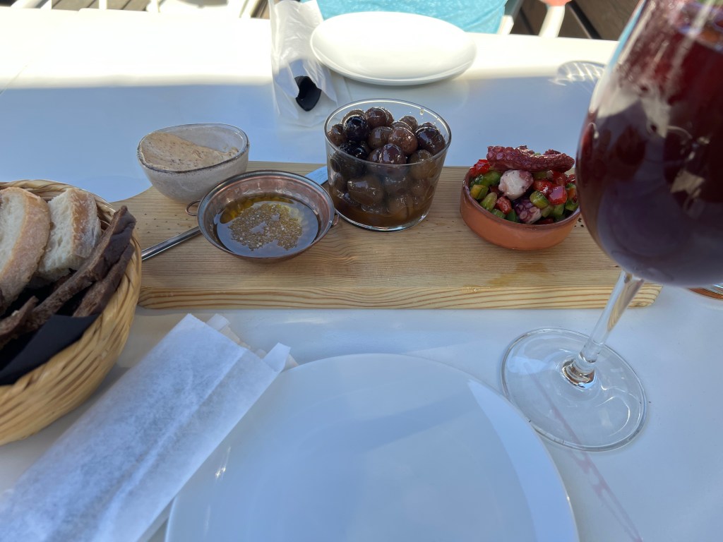 We decided to make it a bit of post beach drink crawl…because there was a rooftop terrace we were wanting to check out too, and our time is getting short, so what the heck, we’re on vacation! Sangria time! And octopus salad with some olives because we also haven’t had octopus on the trip yet either. Mar d’Estorias is a beautiful rooftop terrace in old town Lagos.
