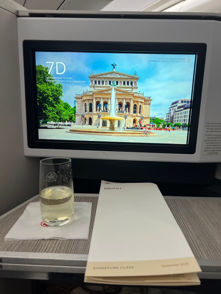 We had just enough time to enjoy our meal and then head down to our gate for our flight to Frankfurt. When we boarded our flight Stephen asked the guy in the pod next to mine if he minded switching with him, and luckily he didn’t mind, so we were side by side after all!