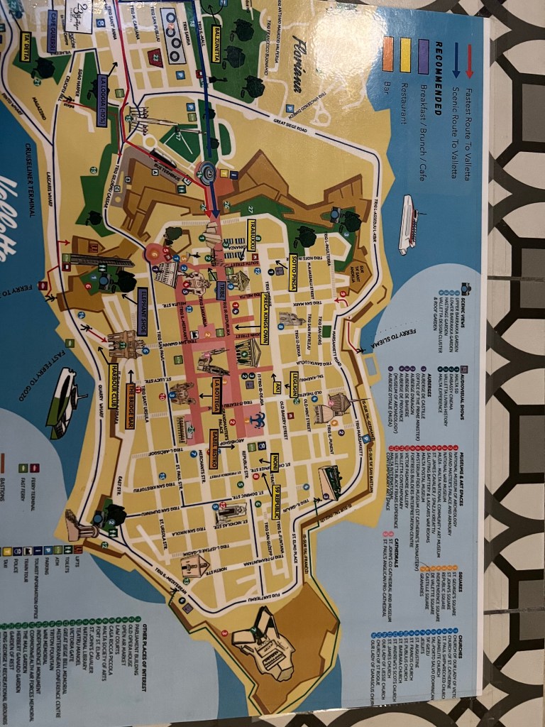 After breakfast we packed up and got an Uber to take us to Mgarr for the ferry crossing. The weather was great, and the ferry crossing was totally uneventful this time. We arrived back in Valletta by noontime. Grabbed another uber to take us back to 23 Boutique Hotel where we’re staying for the rest of our vacation.