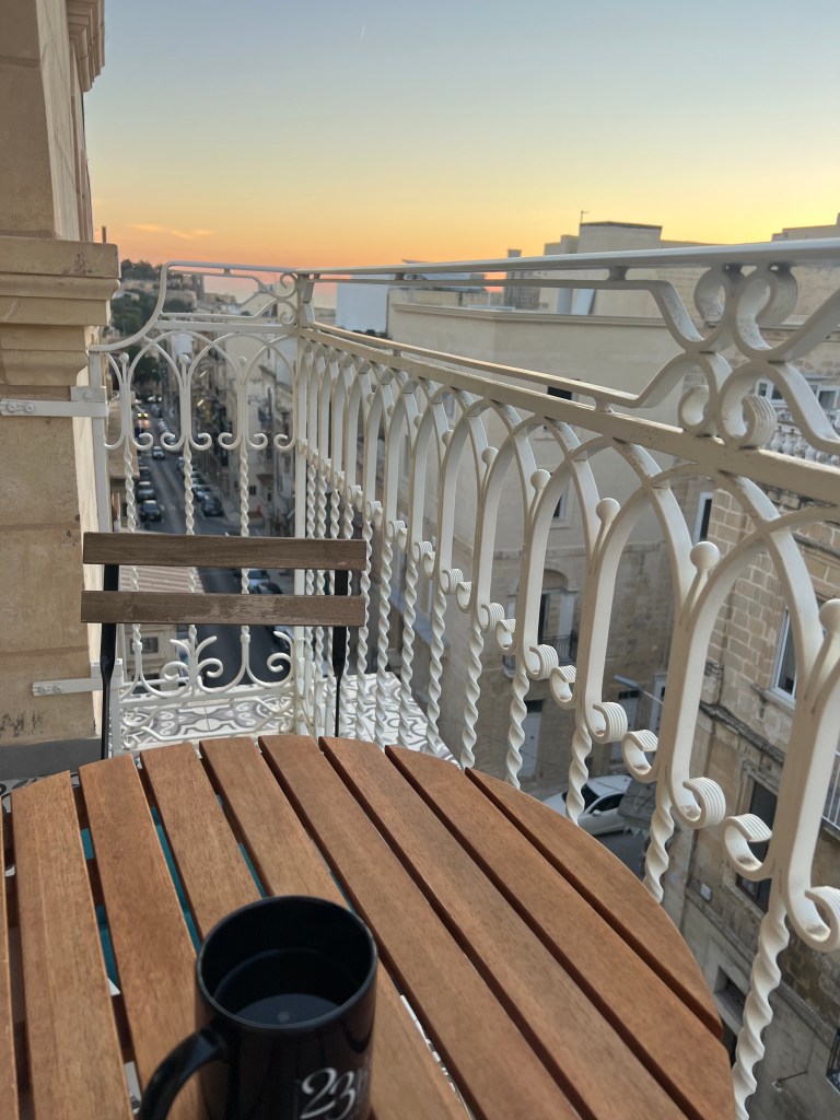 We had a great sleep and felt rested and energized for our first full day in Malta. Stephen made us some in room coffee and we sipped it out on the balcony as we watched the sun come up.