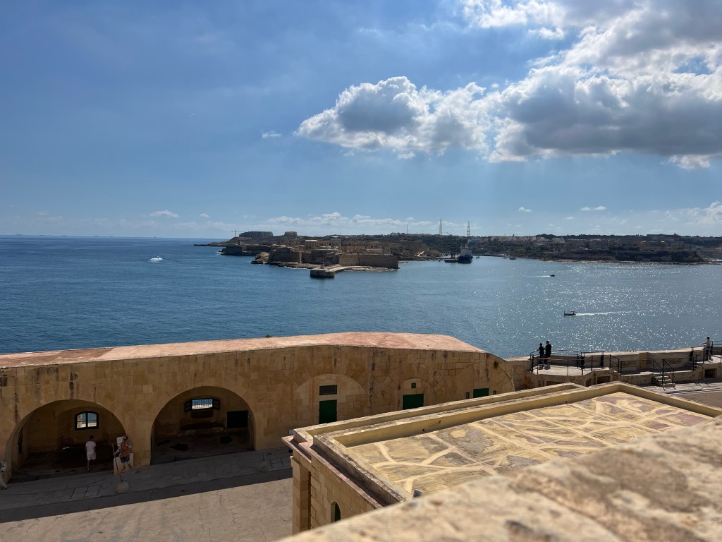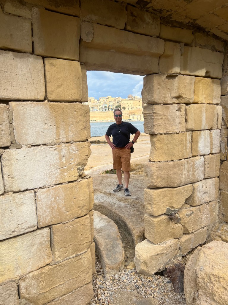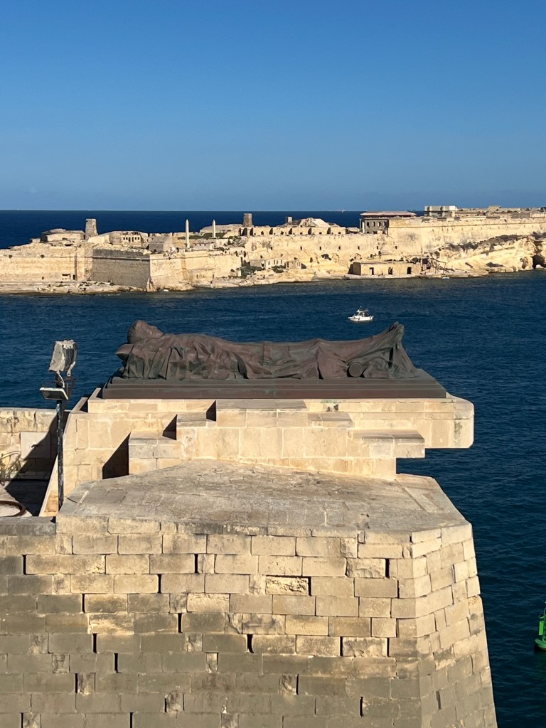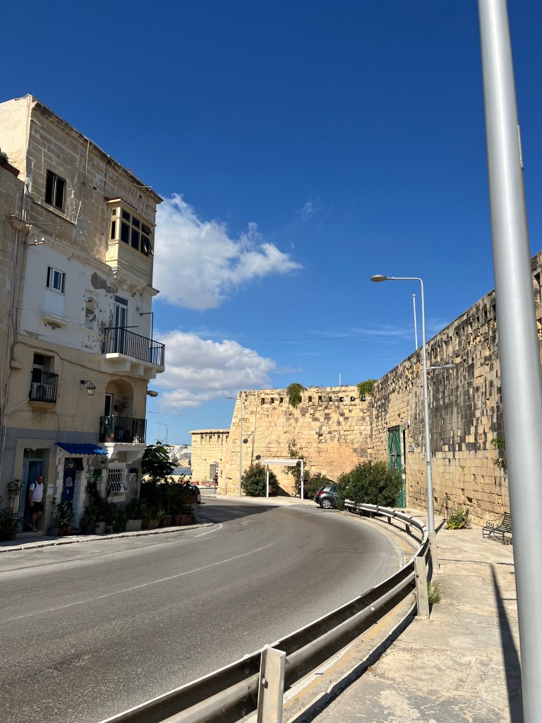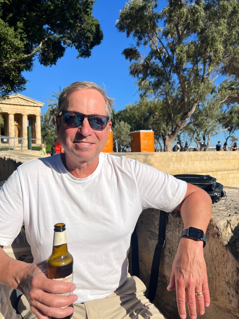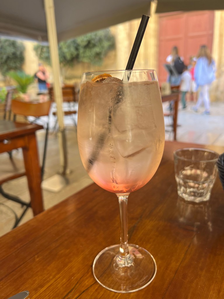 And then Stephen discovered that we were right next to a street bar, so we moved from our park bench to a seat along the fort wall overlooking the Grand Harbour. Stephen had a beer and I had an Aperol Spritz while we enjoyed the last of the afternoon Maltese sunshine.