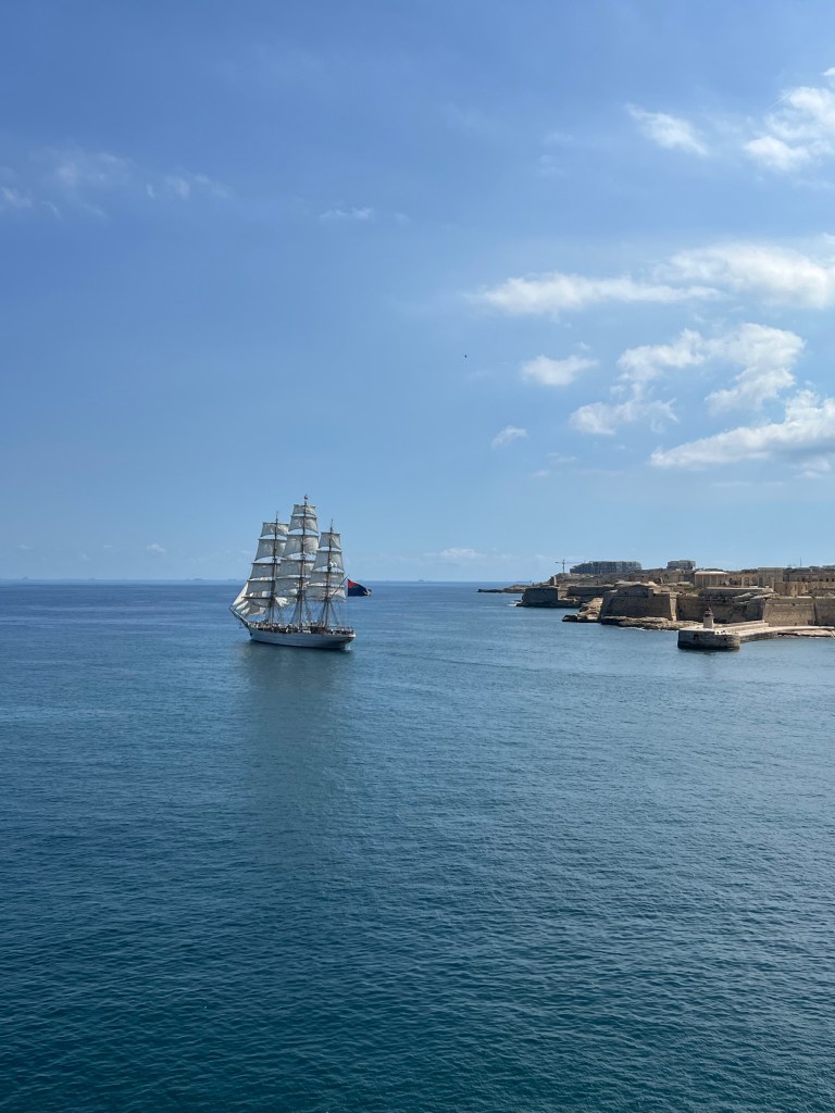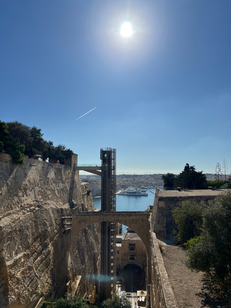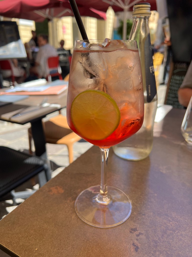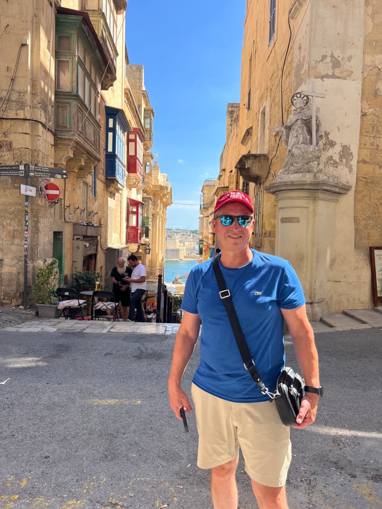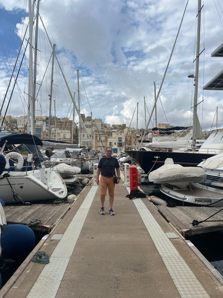 And then Stephen discovered that we were right next to a street bar, so we moved from our park bench to a seat along the fort wall overlooking the Grand Harbour. Stephen had a beer and I had an Aperol Spritz while we enjoyed the last of the afternoon Maltese sunshine.