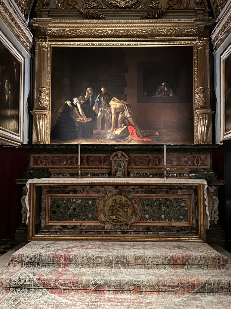 The area that I found most fascinating was the oratory and museum that contains Caravaggio’s Beheading Of John The Baptist. There is a room beyond this where you can see Caravaggio’s portrait of an aged St Jerome. There is also a short film you can watch called Meet Caravaggio which is a short bio and pretty interesting.