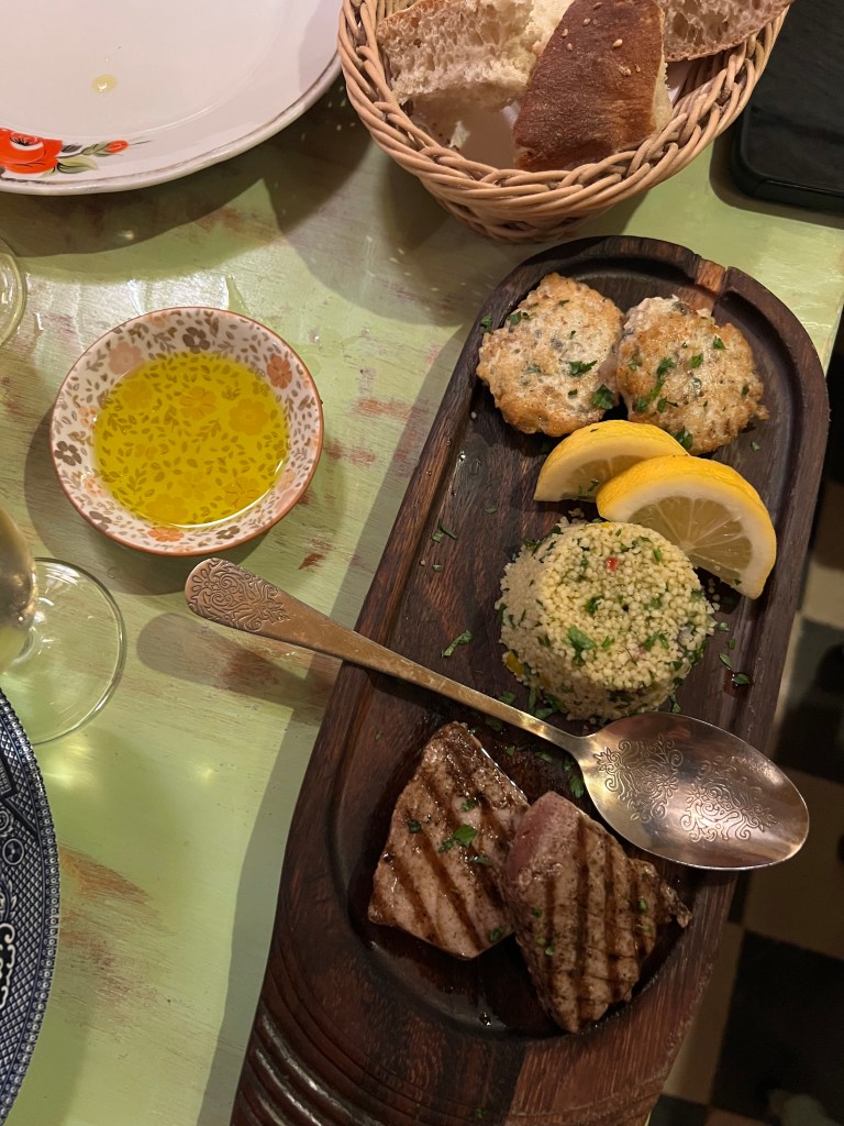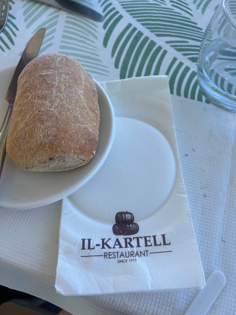 Tonight we are heading out to dinner at Neolitik Kitchen. I found this in the Lonely Planet guidebook and it had me at “local Maltese dishes with a Middle Eastern slant”. The food was actually really good, but my biggest hang up was the atmosphere. The lights were so bright, and I think after the over stimulation of the day, I just really needed a better vibe. You know, like some dim lights, some candles, nice soft music, cushy chairs. The vibe wasn’t vibing for me but the food was good!