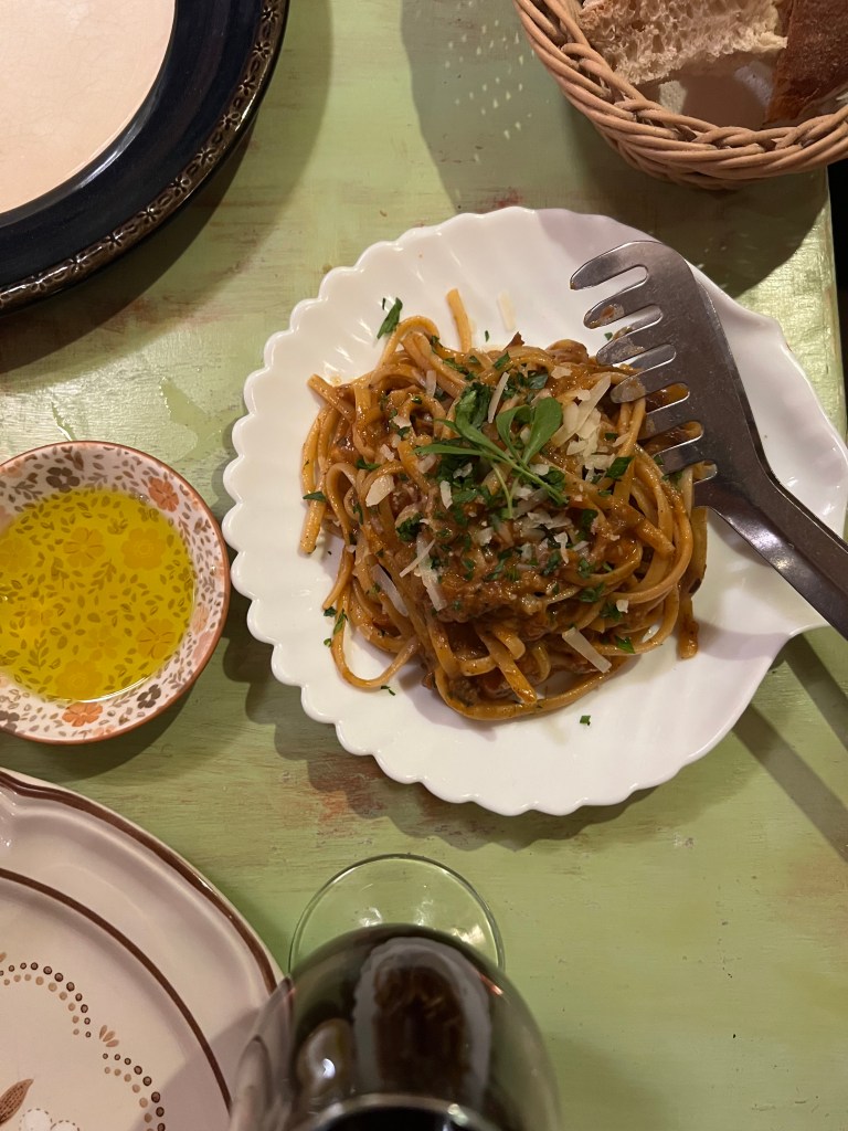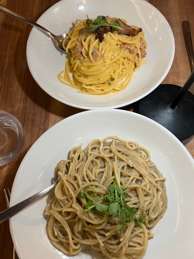 We ordered the calamari fritti for a starter and a small spaghetti carbonara and a small spaghetti caccio & pepe. All the dishes were really good but after our large day we were pretty tired so we basically ate, paid the bill and walked back to the hotel because sleep was calling for us!