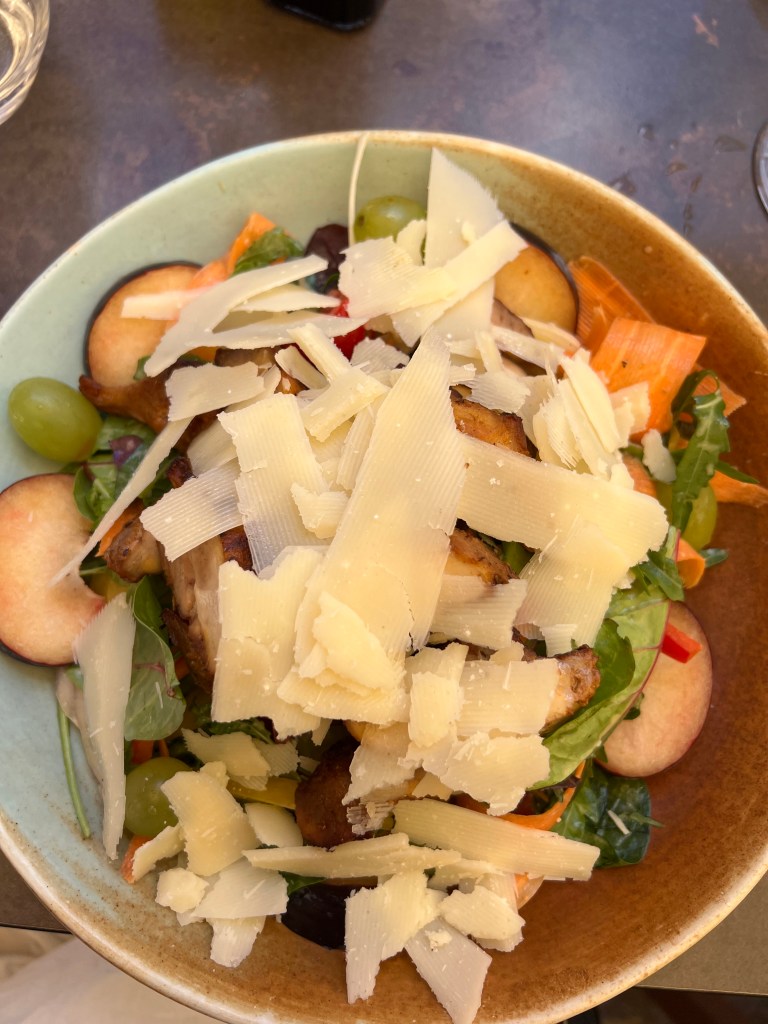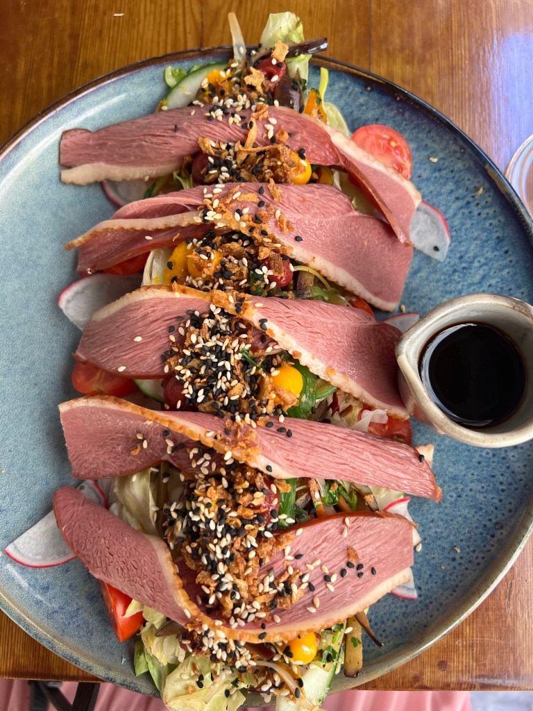 I had a prickly pear spritz, which I adored! And the smoked duck breast salad with a thai vegetable stir fry, wakame, crispy onions and a soy, sesame and coriander dressing. My whole meal was delicious