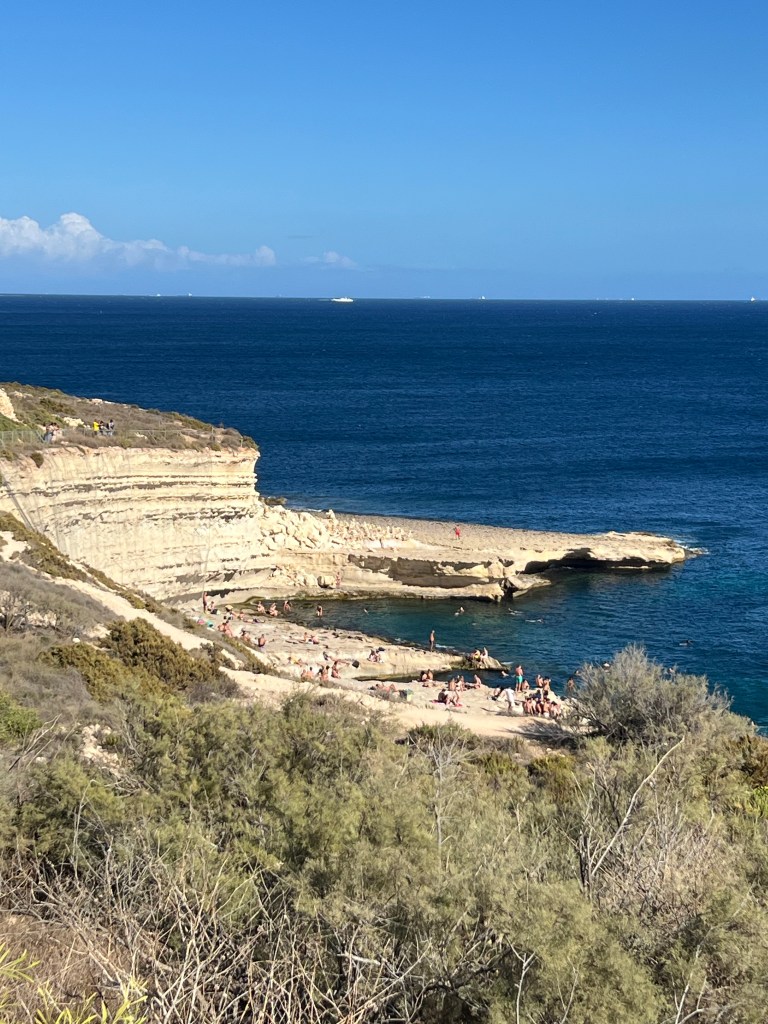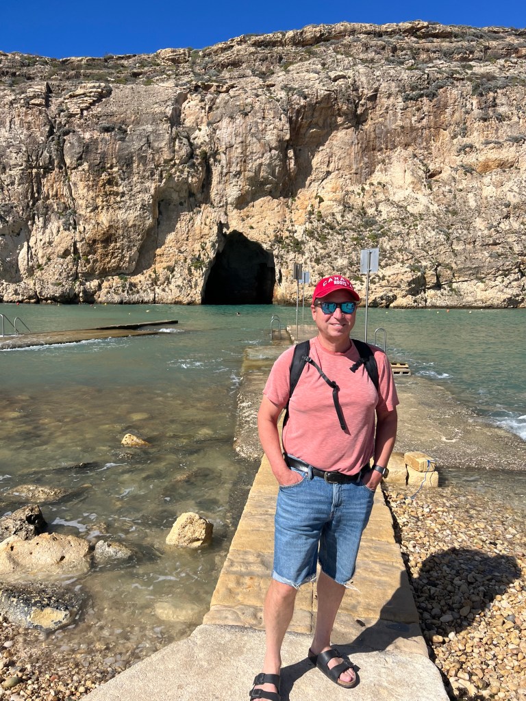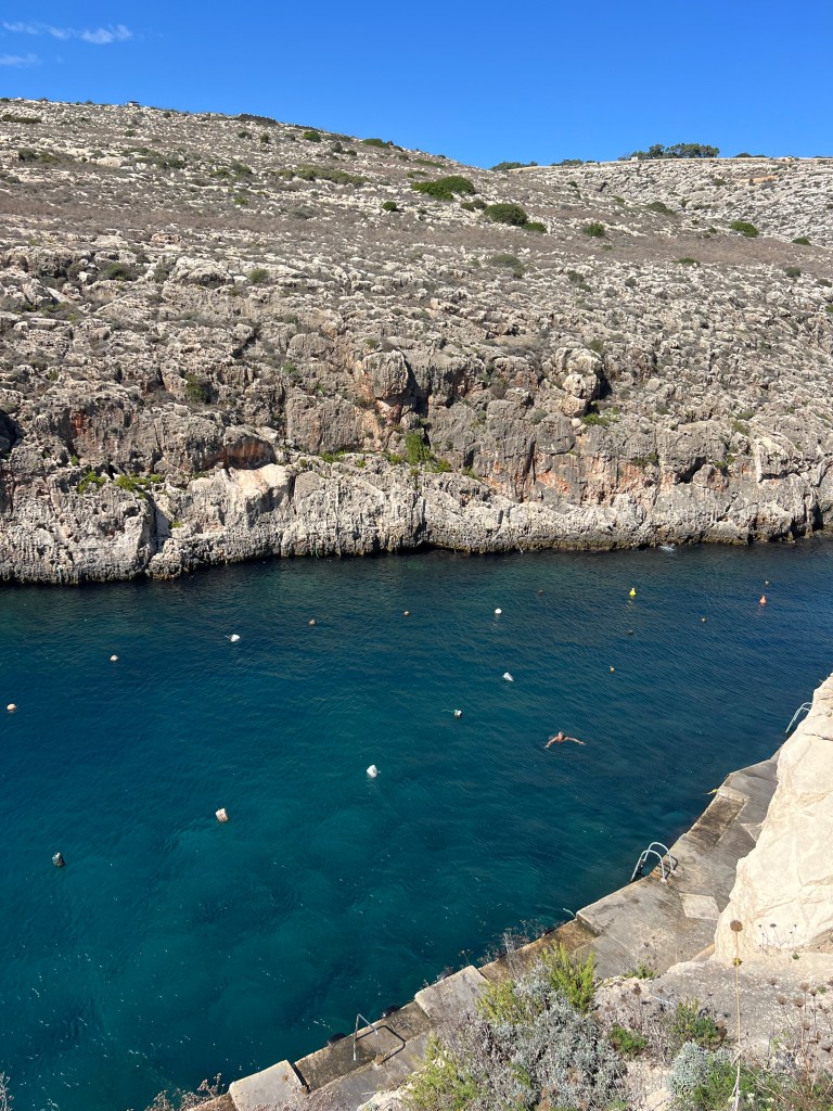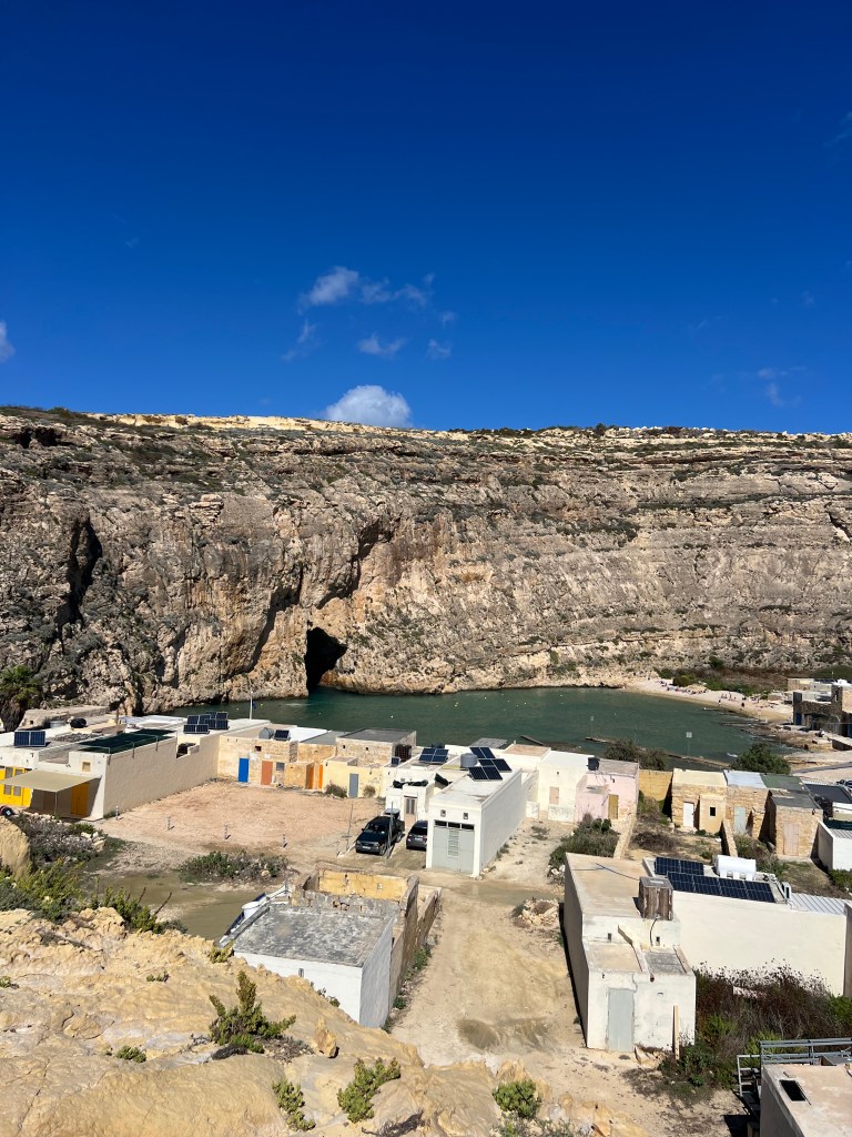 Side note: Xlendi (pronounced Shlen-dee) is a beautiful resort town. It’s a small, picturesque seaside village, only 3km from Victoria) It’s nestled in a narrow bay, surrounded by steep cliffs and rolling hills. It was once a quiet fishing village and is now a popular swimming, snorkeling and boating spot. The waterfront is lined with restaurants and cafes and there are small scale resort developments, but it still has its charm.