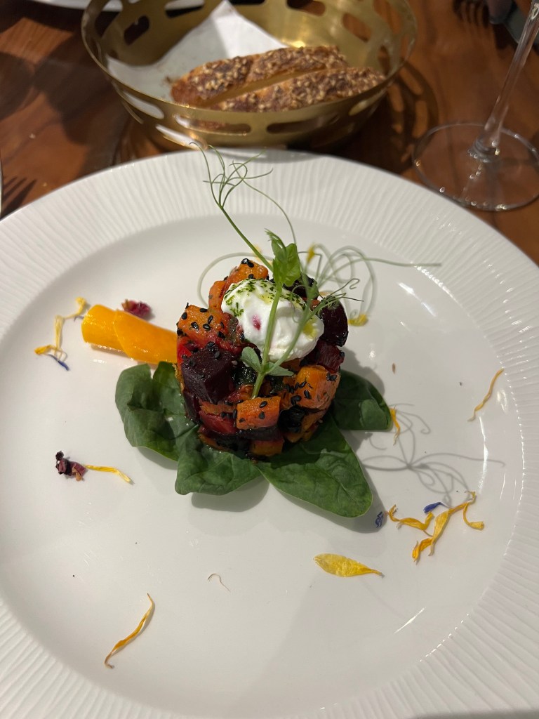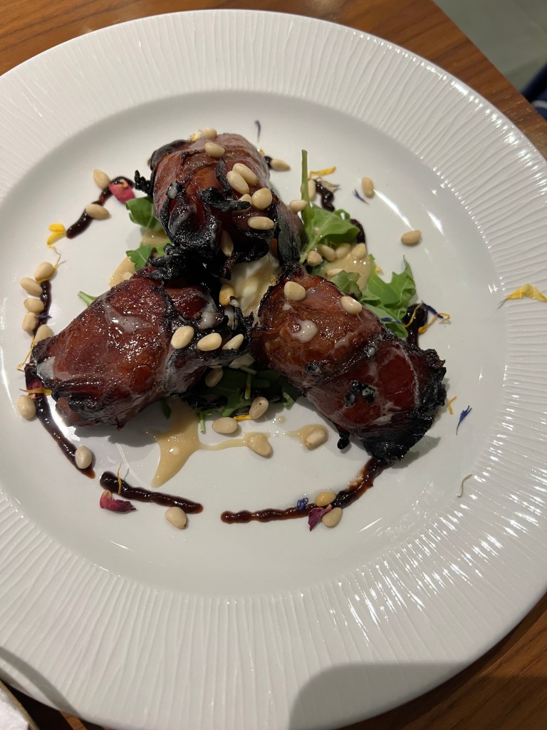 For our starters we ordered the Local Dates Roulade – Gozitan Dates stuffed with Maltese sausage, gorgonzola, honey and homemade spek. I couldn’t love a date more!!!! So good! And the Smoked Beetroot & Pumpkin salad, which was good and checked the veggie craving box for me.