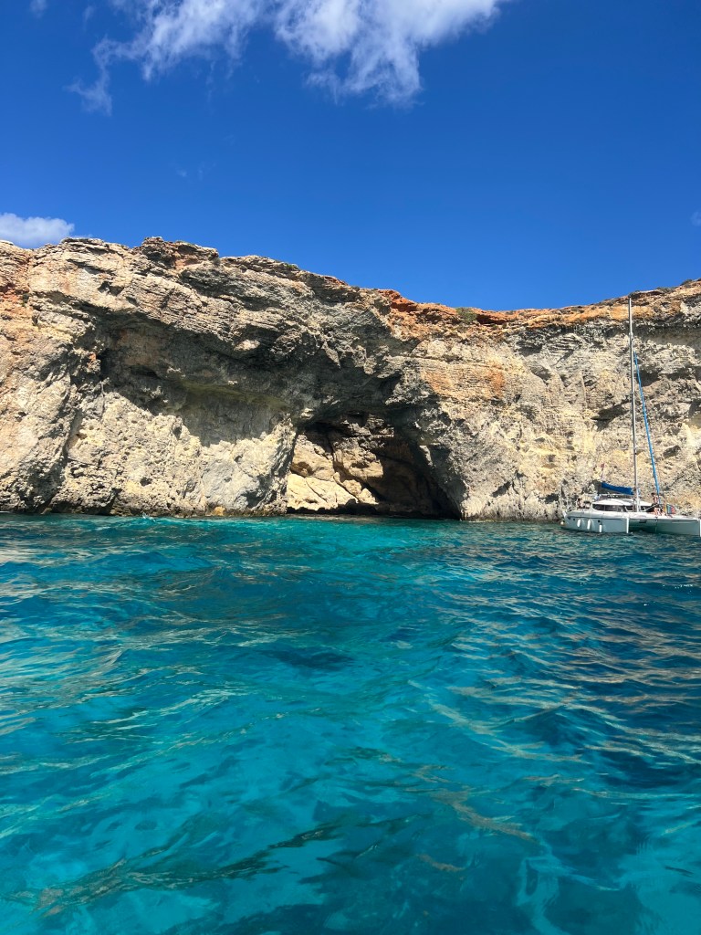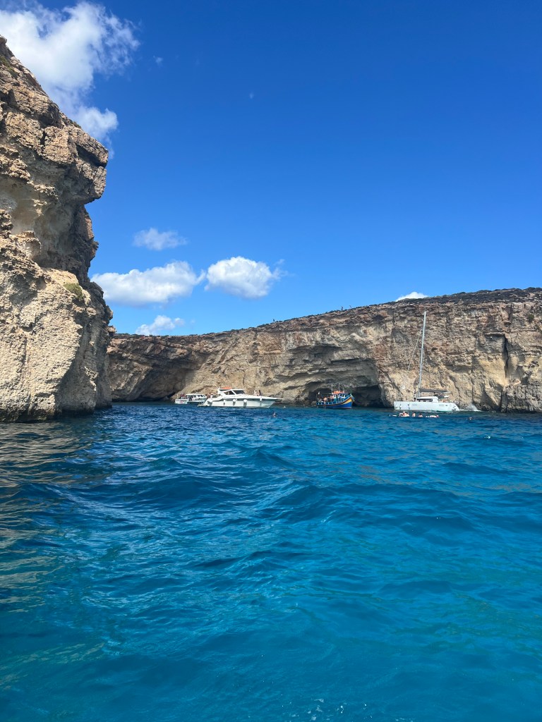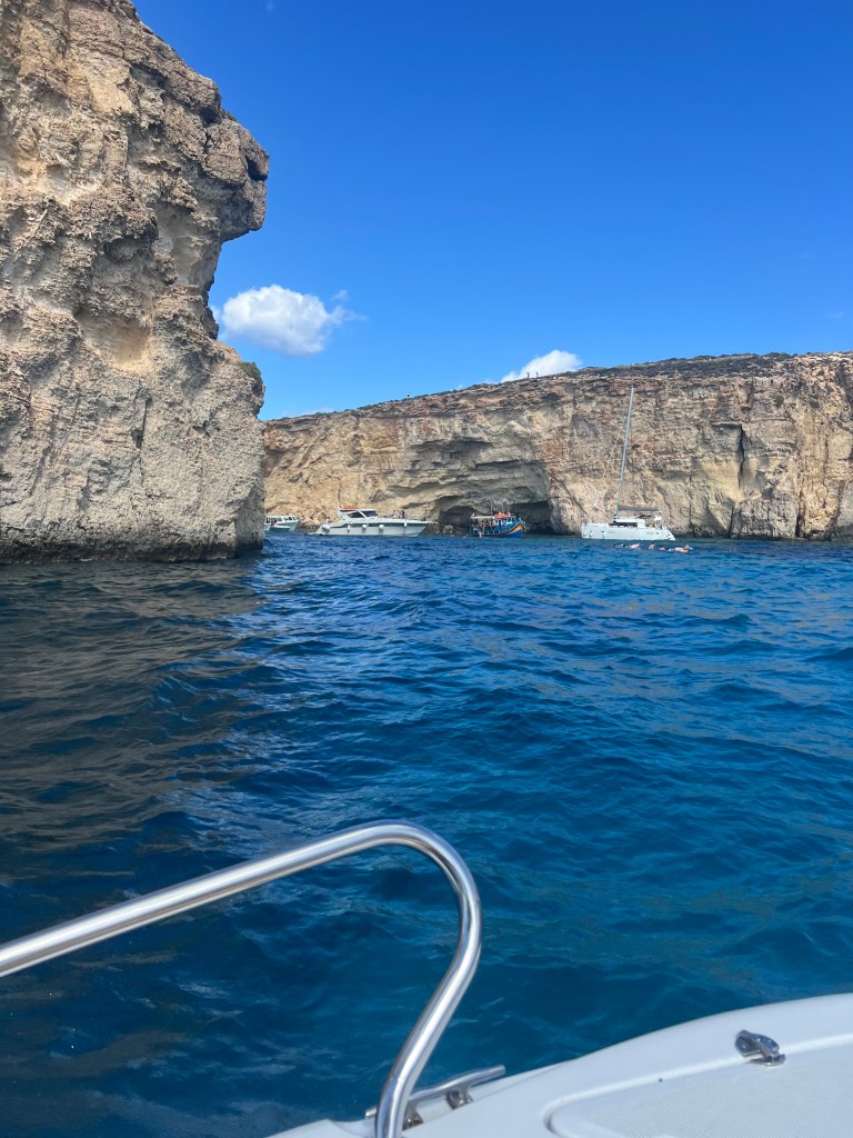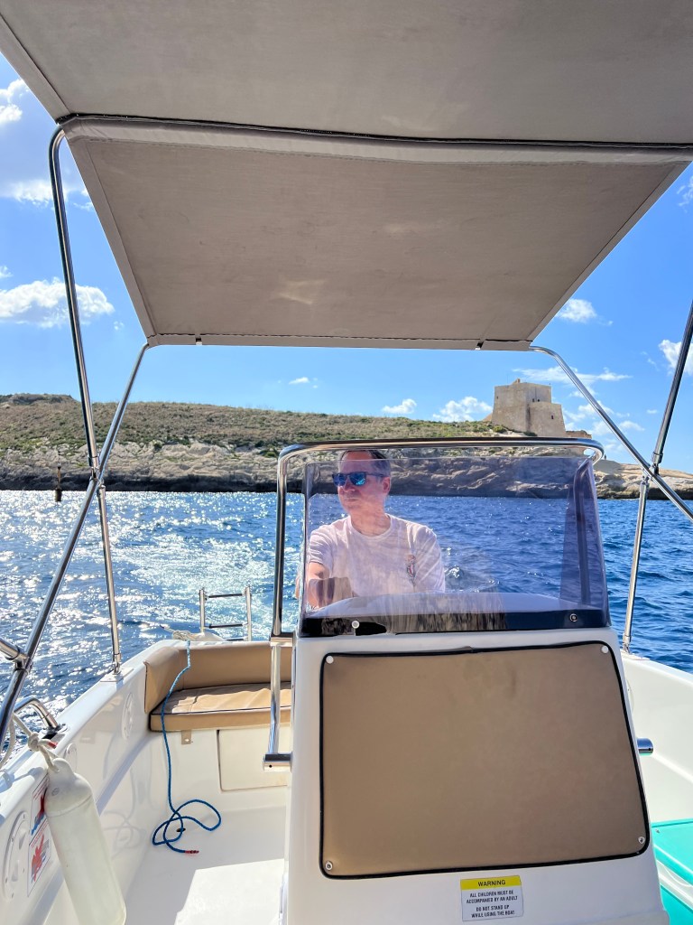 After a little post lunch snooze, we decided to keep exploring Comino, however our boat’s motor didn’t agree. After multiple attempts we had to call into the charter company and they had to come with a new boat. Which wasn’t a big deal, we just relaxed as we waited for the replacement boat, which probably took less than an hour to arrive.