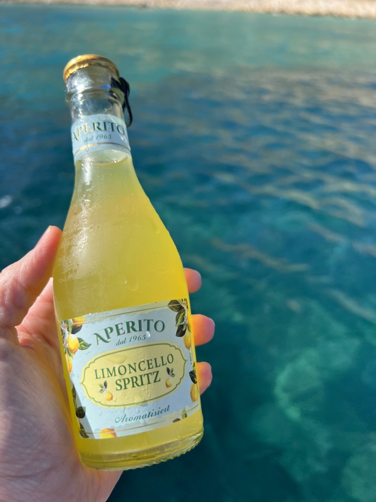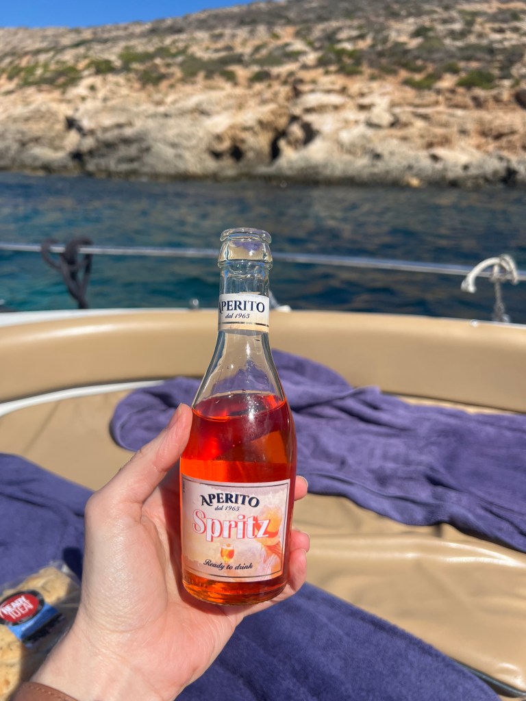 After our swim, we laid out on the bow of the boat to dry off and then decided it was time to have some lunch. We grabbed our sandwiches from the cooler and I decided it was a perfect time for a spritz. Honestly, spritzes and boats on a sunny day are a match made in heaven!