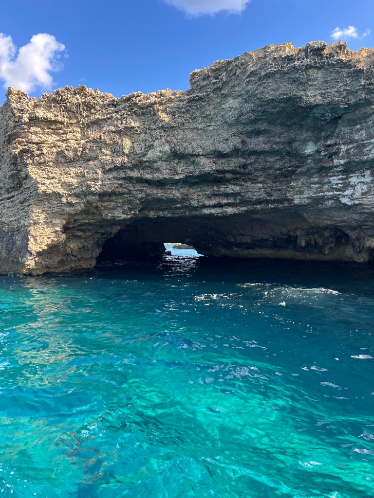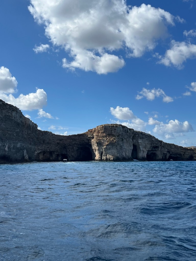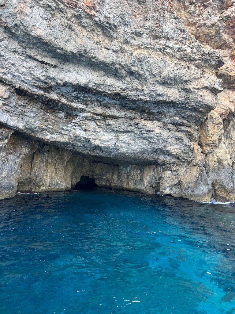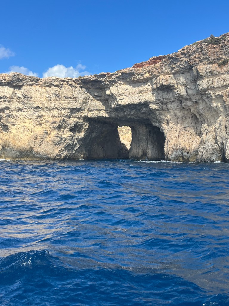 Once our new boat arrived and we transferred our belongings we were on our way again. We decided to explore in the direction of counter clockwise, so we headed south towards St Mary’s tower and all along the coast line, stopping to check out caves along the way. Comino is a pretty small island, just 2.5km by 1.5km. There are walking trails but we felt like we were getting short on time so we stuck with exploring by sea.