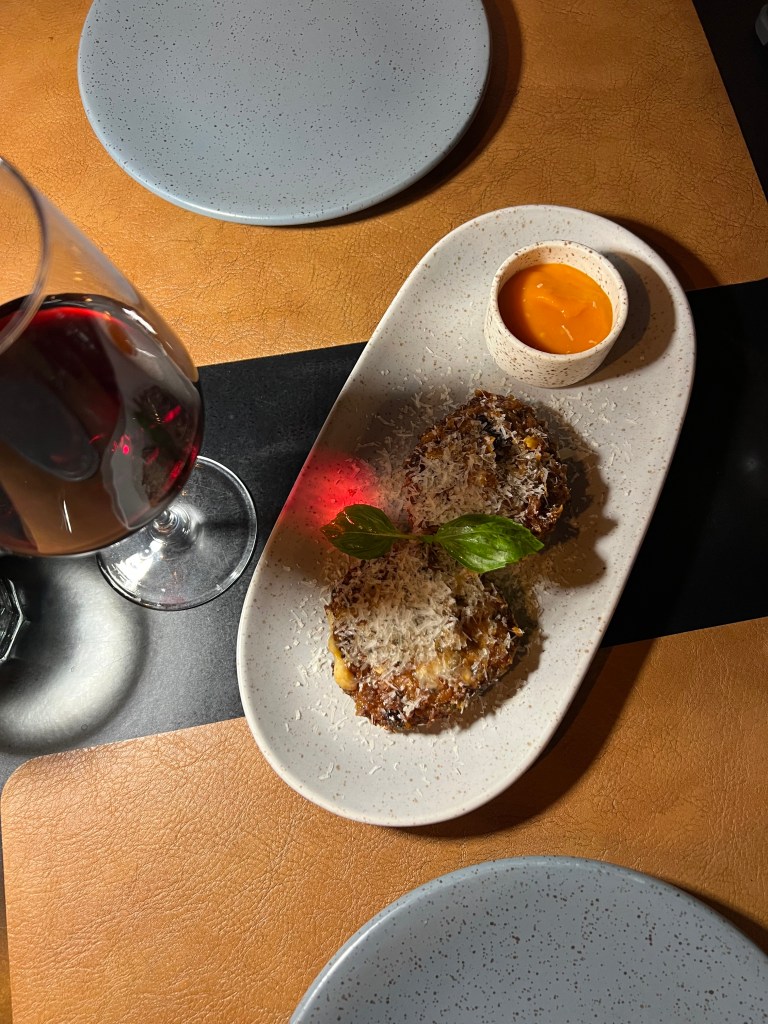 For starters we ordered Polpette di Parmigiana: deep fried aubergine fritters served with parmesan cheese and tomato jam. WOW! 5 stars!