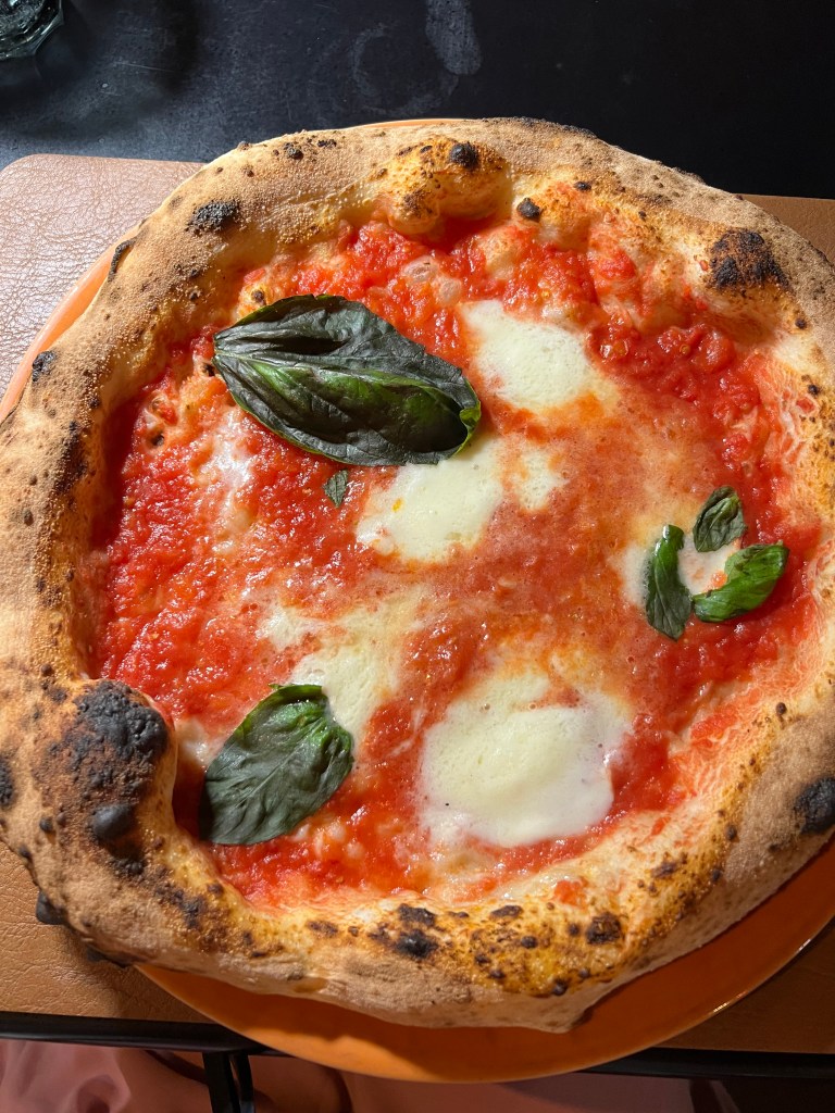 The pizzas we ordered we La Campana: buffalo mozzarella, tomato sauce, basil and EVOO