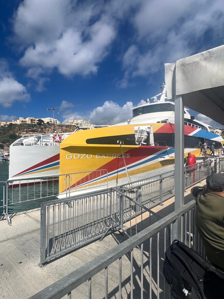 We’re headed to the island of Gozo today! We decided to call an uber to take us down to the ferry port. It’s definitely within walking distance but with all our luggage we figured it would be easiest to drive. We arrived at the terminal about 20 minutes before the departure we wanted to take. We’re taking the Gozo fast ferry (it’s located at the same spot as the dghasjsa tal-pass that we took to Birgu yesterday) and we wanted to get the 10:45 crossing. We were told as long as you get there early you don’t have to purchase a ticket online.