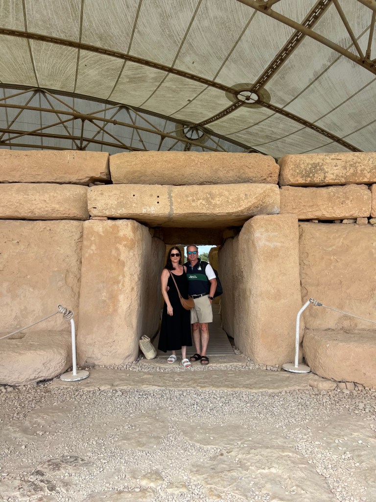 This morning we are heading to Hgar Qim (pronounced Hah-jar-eem) and Mnajdra (Im-nay-dra) which is located on the south coast. We Ubered from our hotel in Floriana which is about 13 km and just over a 20 minute drive. Hagar Qim and Mnajdra are two of Malta’s most important and impressive prehistoric temples and are UNESCO World Heritage Sites. They are among the oldest free standing stone structures in the world!! Dating back to around 3600-2500 BC. Which makes them older than Stonehenge and the Pyramids in Egypt!