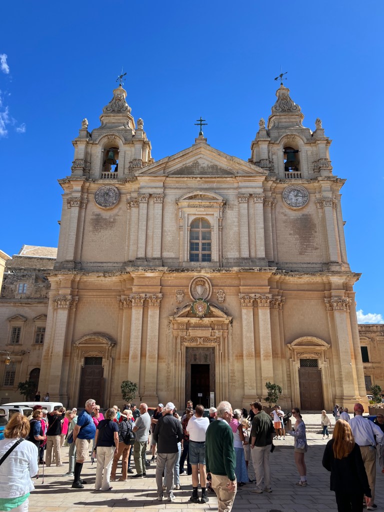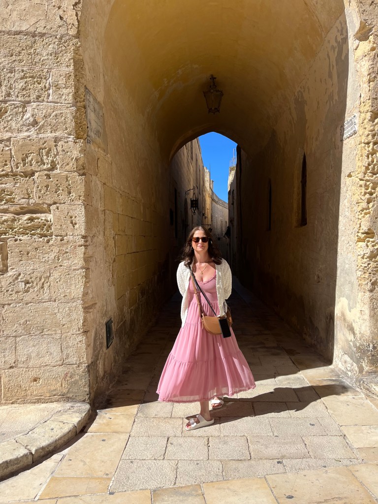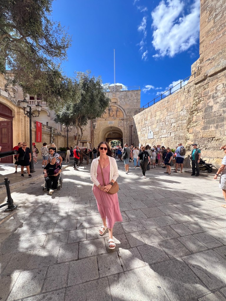 Today Stephen had it in his head that we should try the public transport to get to Mdina this morning. So we walked to the nearest bus stop and after a pretty long wait for the right bus to arrive (way past the scheduled time) we finally got on the bus and it was PACKED. We’re shoved in like sardines and the bus is jerking to a stop on every block. It’s hot and stuffy and I’m feeling nauseous and thankfully Stephen quickly changes his mind and he was like lets get off now! You don’t have to ask me twice. This also happens to be the day we discover that after price comparing Uber to Bolt, Bolt is way cheaper than Uber and we should have been using Bolt all along. Lesson learned. The Bolt is ordered and we’re on our way to Mdina!