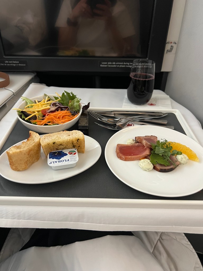 We flew from Malta to Zurich. I thought we’d have lots of time for our connecting flight but by the time we got through customs etc and we reached our gate the flight was already boarding. And the good news (besides not missing our flight) was that we got upgraded to business class!